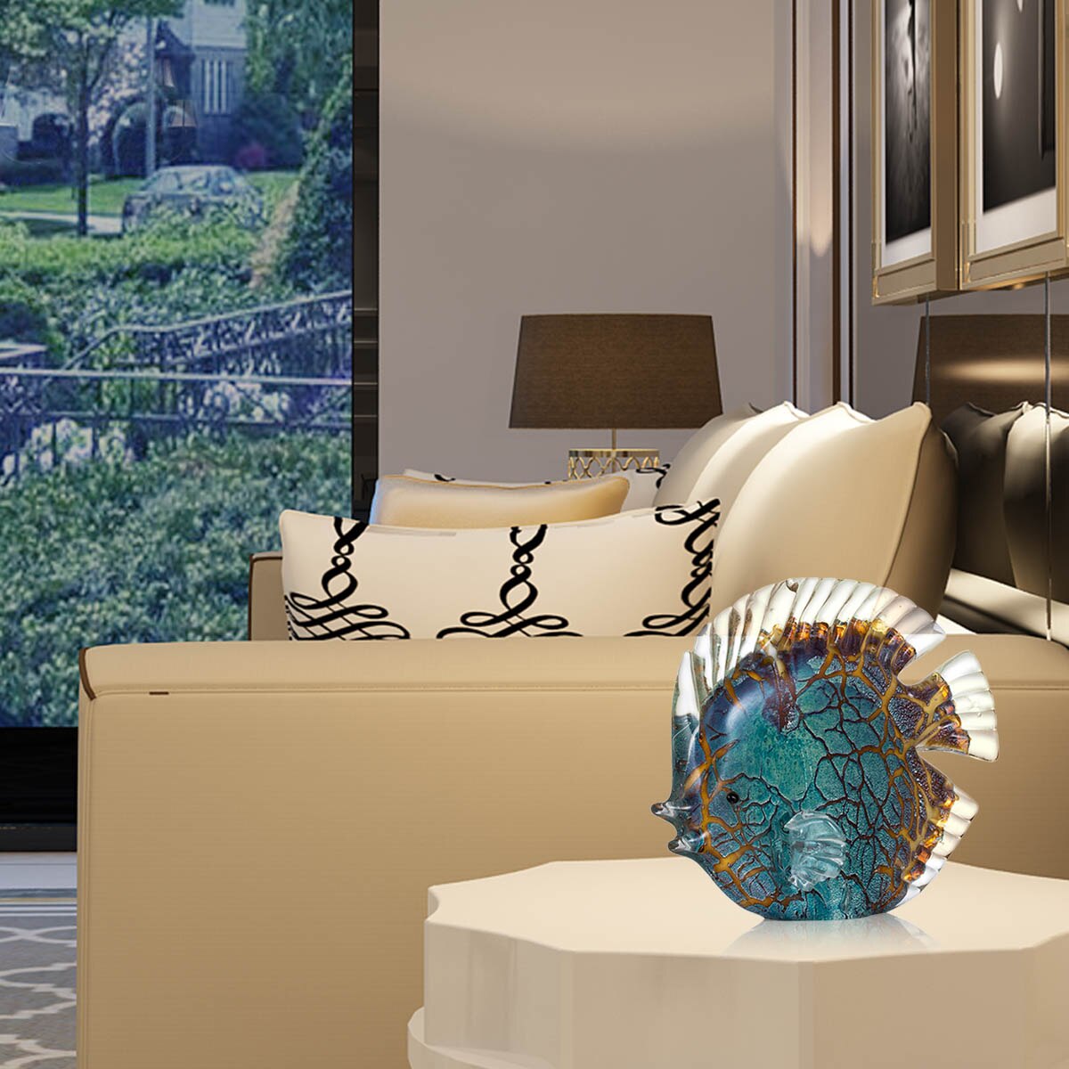 Diese farbenfrohe Skulptur eines tropischen Fisches wurde von einem Künstler mit viel Liebe zum Detail handgefertigt. Ihr Design begeistert mit lebhaften Farben und filigranen Schnitzereien, die einen sehr realistischen Eindruck vermitteln; die Detailtreue ist herausragend, und die Oberfläche hat eine feine Textur, die ein authentisches Empfinden erlaubt. Ideal, um Wohnzimmer, Büros, Schlafzimmer und viele andere Räume zu verschönern.