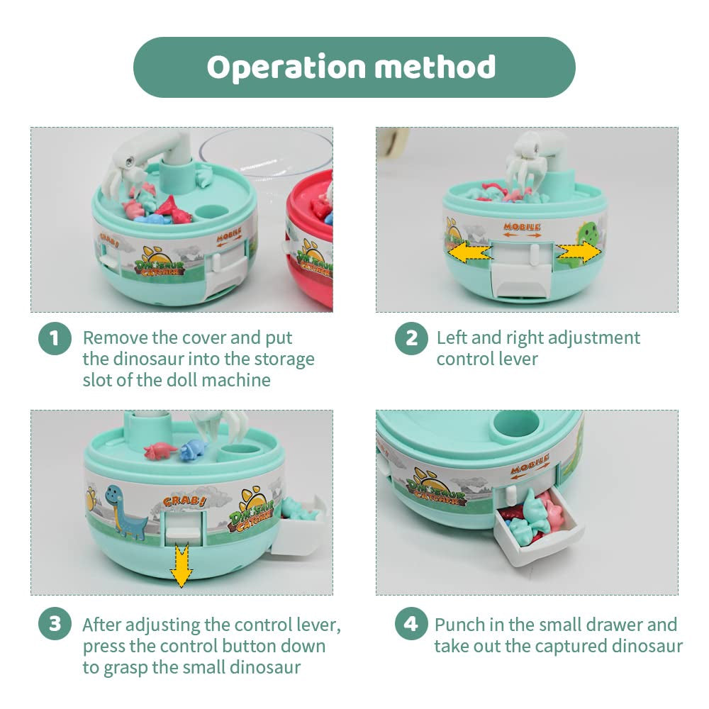 • 🦕【Unendlicher Spaß】Die Mini-Krabbenmaschine beinhaltet 8 kleine Dinosaurierfiguren als Preise für die Krabbenmaschinen. Zudem enthält das Mini-Fischspielset 8 farbenfrohe Figuren. Verschiedene, unterhaltsame Spiele sorgen für stundenlanges Vergnügen und verhindern Langeweile bei den Kindern.