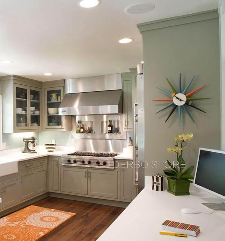 Das Produkt ist eine inspirierte Nachbildung von Uhren-Designs aus der Mitte des 20. Jahrhunderts (1950er Jahre). Diese lustigen und interessanten Stücke verfügen über klassische Retro-Farben der 50er Jahre und bieten eine stilvolle Alternative zu den tristen und langweiligen modernen Wanduhren, die auf dem Markt verbreitet sind.