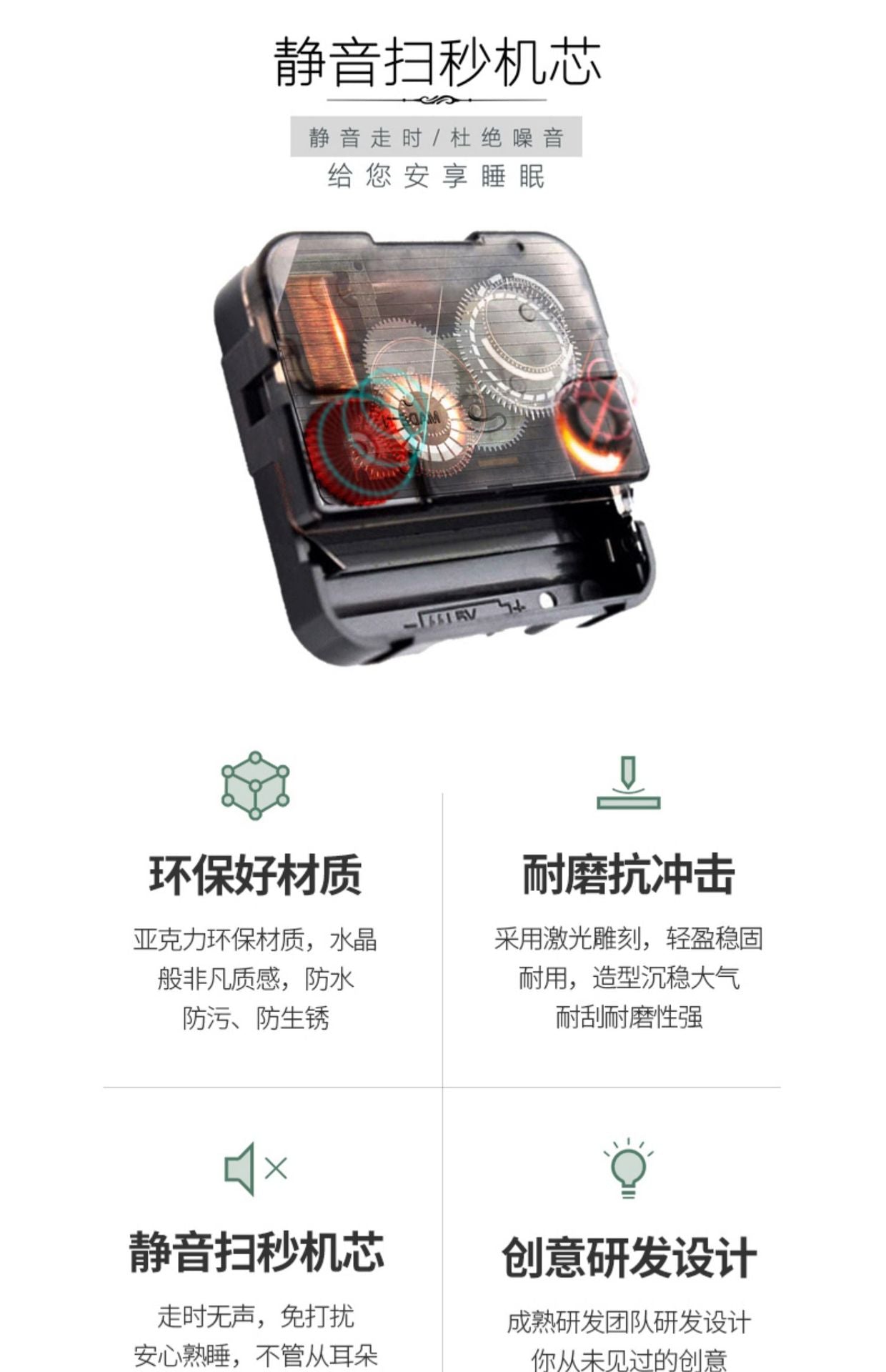 Material: Eisen + Lautloser Sekundenzeiger mit sanftem Betrieb