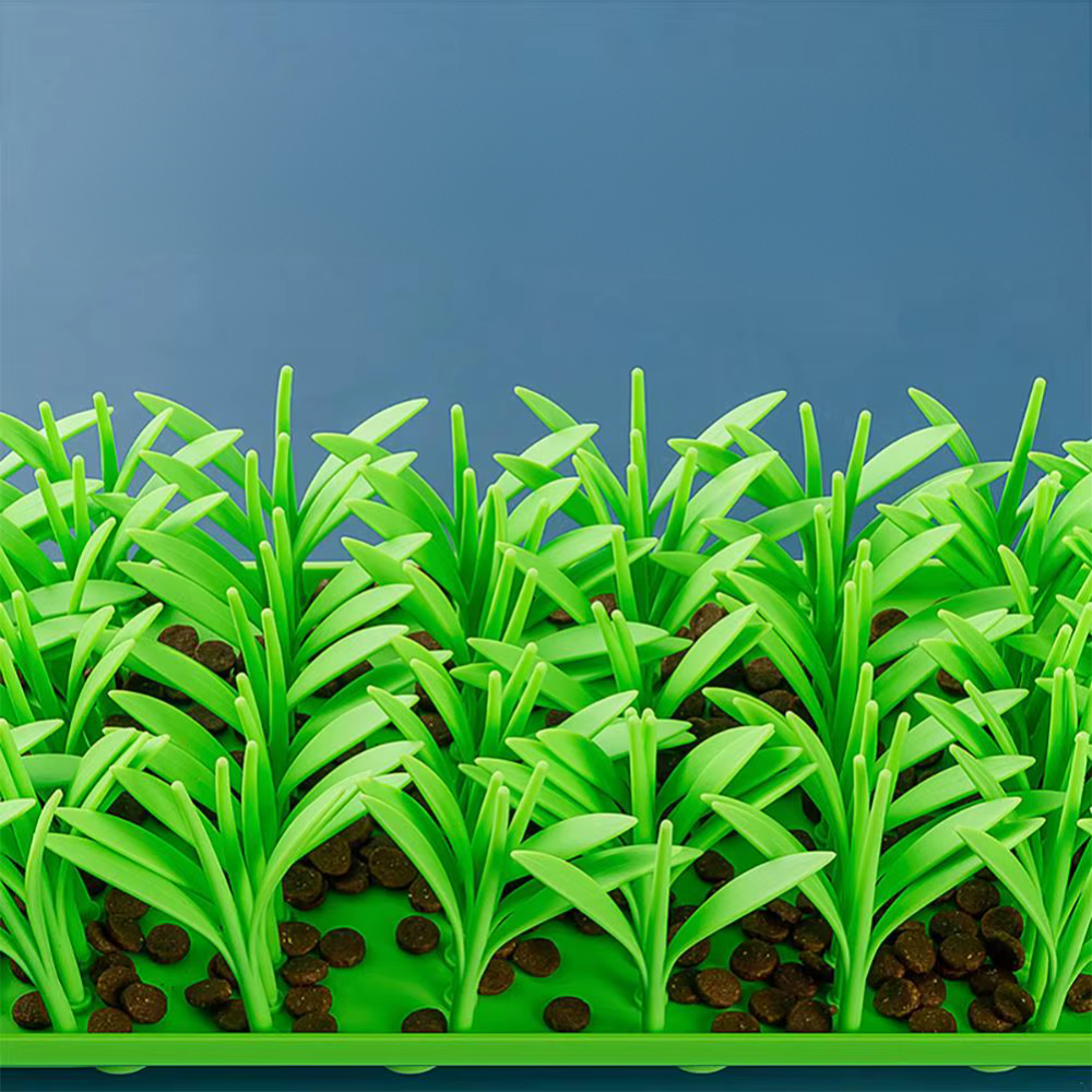 Die PfotenMatte Pet Mat ermutigt Ihr Haustier langsam zu fressen, während andere Leckmatten oft schnelles Fressen fördern, was das Risiko von Verdauungsstörungen und Unwohlsein senkt. Das Grasdesign fordert Ihr Haustier geistig heraus und macht jede Mahlzeit unterhaltsam und anregend!