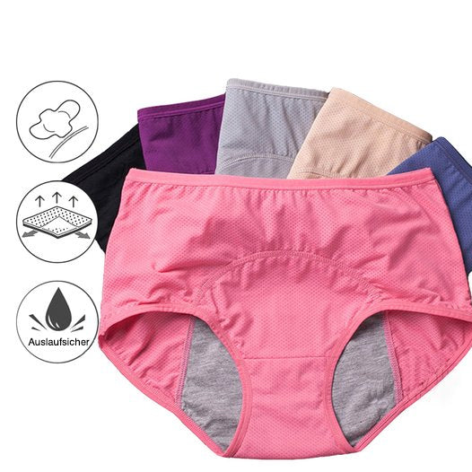 Neueste Technologie aus dem Jahr 2022 für auslaufsichere Materialien. Selbst bis zu 30-50 ml Flüssigkeit werden rasch aufgenommen und sicher eingeschlossen, was 2-3 Standard-Tampons oder Binden entspricht. Halten Sie Ihre Unterwäsche den ganzen Tag über trocken!