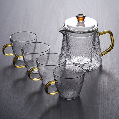 - Die Teekanne ist mit einem goldenen Griff und einem Knopf auf dem Deckel versehen.