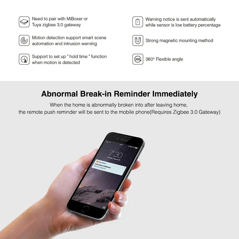 Der PIR Bewegungsmelder (Zigbee 3.0) bietet dir mehr Sicherheit und Komfort im Alltag. Ob für die automatische Lichtsteuerung, zur Einbruchsicherung oder zur Einbindung in smarte Szenarien – dieses Gerät macht dein Zuhause smarter und effektiver. Verabschiede dich von überflüssigem Stromverbrauch oder manueller Lichtsteuerung – genieße ein vernetztes Zuhause, das sich deinen Bedürfnissen anpasst.