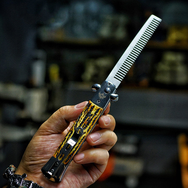 Avelena | Tragbarer faltbarer Edelstahl-Kamm, mit Flaschenöffner & Schraubendreher, für Haar & Bart