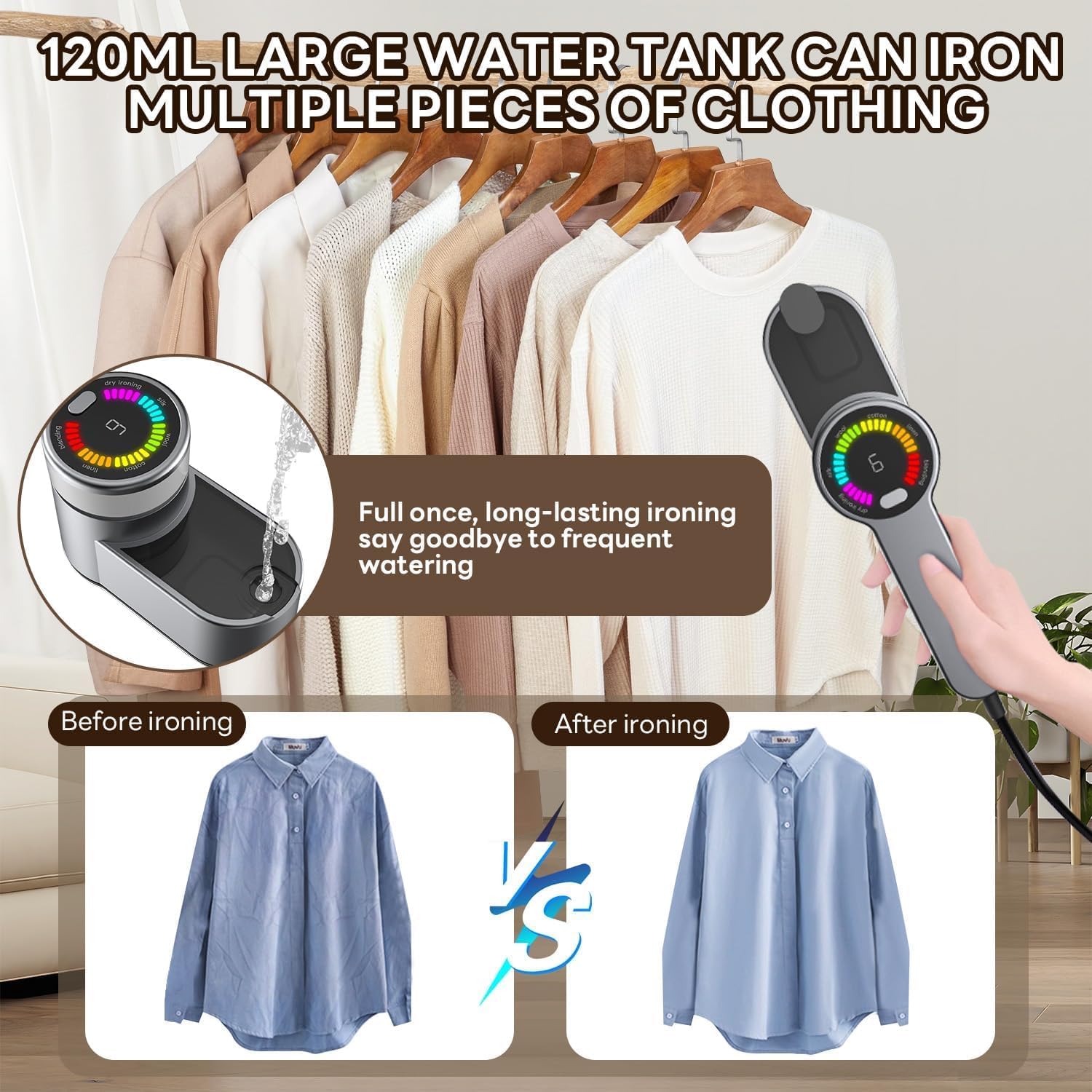 Dieses 2-in-1 Dampfgerät vereint Trockenbügeln und fünf Dampffunktionen für flexible Anwendungen. Mit einer Leistung von 1200W liefert es einen kräftigen Dampfausstoß und benötigt nur 10 Sekunden zum Vorheizen. Das 180° faltbare Design sorgt für handliche Maße mit einem Gewicht von nur 0,45 kg, ideal für unterwegs. Ein 120-ml-Wassertank ermöglicht längeres Dampfen, während das LED-Panel sechs einstellbare Modi für unterschiedliche Stoffe bereitstellt.
