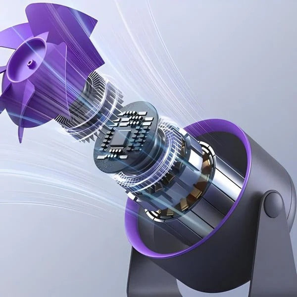 Der Ventilator nutzt einen bladeless Turbinenmotor, um Luft in einem gleichmäßigen Fluss zu erzeugen und zu kanalisieren, wodurch Lärm reduziert und die Sicherheit verbessert wird.