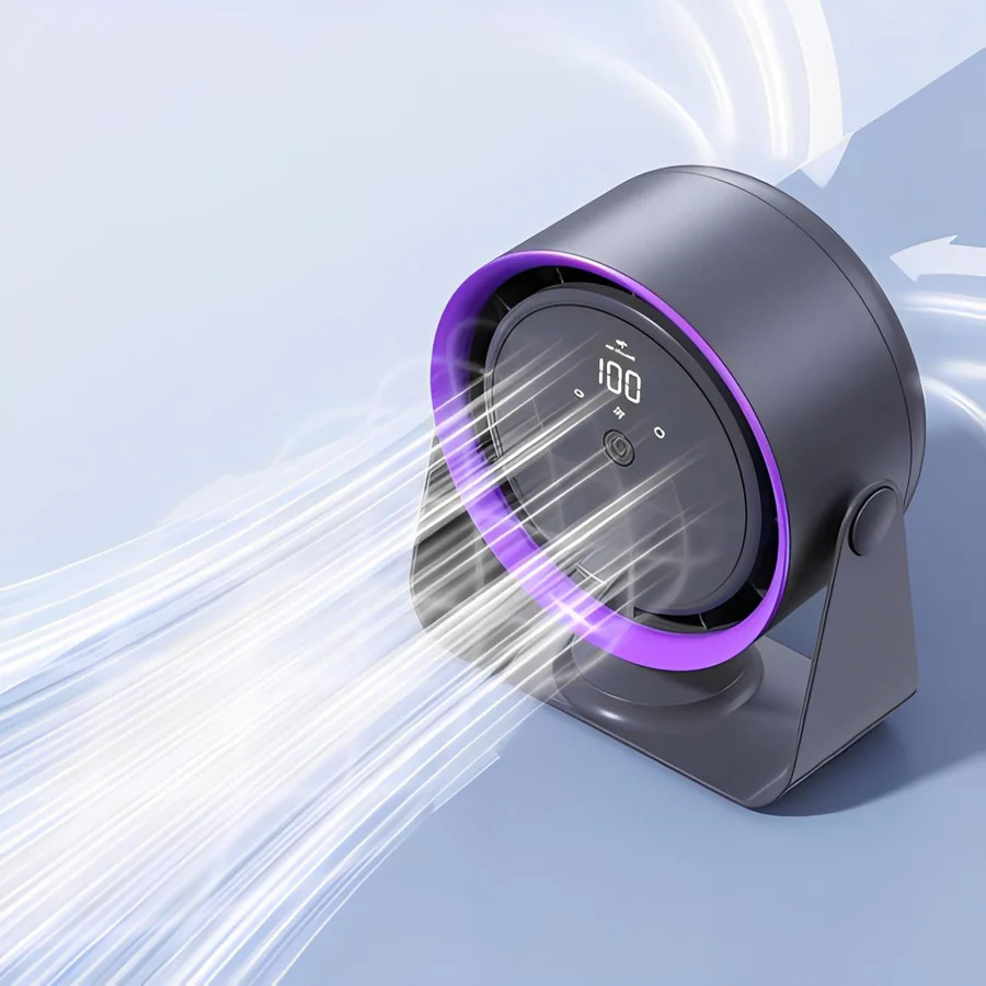 Bleiben Sie erfrischt, ohne die Sicht auf Klingen mit dem bladeless tragbaren Ventilator. Dieses kompakte Kühlgerät verwendet ein bladeless Turbinen-System, das Luft leise und sicher zirkuliert und damit perfekt für Haushalte mit Kindern oder Haustieren ist. Sein kabelloses Design und der wiederaufladbare Akku machen es zur idealen Wahl für Schreibtische, Nachttische oder den Einsatz unterwegs auf Reisen. Mit fünf verfügbaren Geschwindigkeitsstufen können Sie den Luftstrom an Ihre Vorlieben anpassen. Egal, ob Sie drinnen arbeiten oder die Natur genießen, dieser Ventilator bietet eine sicherere und leisere Option im Vergleich zu traditionellen Ventilatoren und hält dabei eine hohe Effizienz aufrecht.