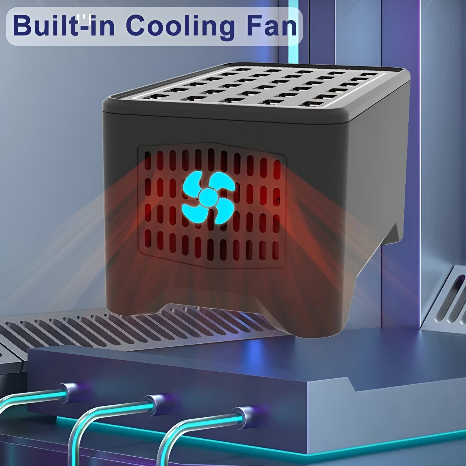 Der integrierte Lüfter und die Antirutschmatte sorgen für eine sichere und stabile Ladeumgebung ohne Überhitzung.