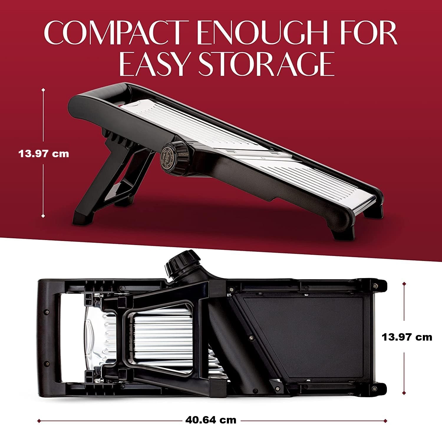 Verbessern Sie Ihre Kochkünste mit unserem Premium Gemüsehobel, dem perfekten Utensil, um Gemüse, Kartoffeln, Gurken und mehr schnell und präzise zu schneiden! Dieser Mandolinenschneider wurde sowohl für Effizienz als auch für Sicherheit entwickelt und verfügt über eine hochwertige Klinge aus rostfreiem Stahl für ultra-scharfe Schnitte sowie schnitthaltende Handschuhe, die Ihre Hände vor Verletzungen schützen.