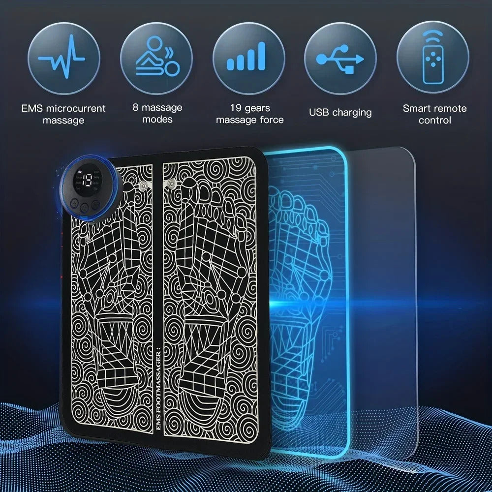 Erleben Sie herausragenden Stressabbau und tiefgreifende Entspannung mit unserem benutzerfreundlichen EMS-Fußmassagegerät. Diese fortschrittliche Massage-Matte nutzt elektrische Muskelstimulation (EMS), um Akupunkturpunkte an Ihren Füßen zu aktivieren, die Blutzirkulation zu verbessern und Muskelverspannungen zu lösen – perfekt für Ihre tägliche Wellness-Praxis.