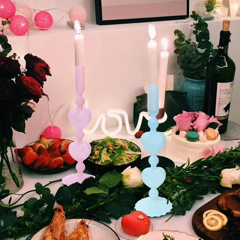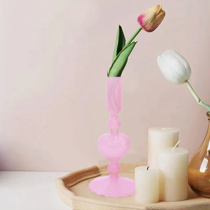 Avelena | Retro Taper Kerzenhalter Rote Herzform Glas Kerzenständer Hochzeit Tischdekoration Zuhause Party Glas Vase Dekor