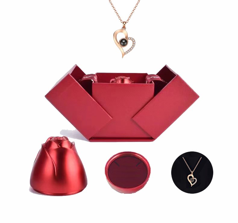 - Lieferumfang: Rosen-Schmuckschatulle, Geschenktüte und Halskette