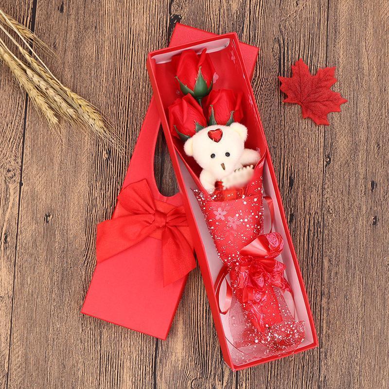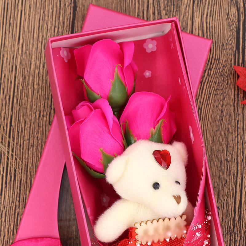 - Im Set enthalten: 3 x Rosenseifen, 1 x niedlicher kleiner Bär, Geschenkverpackung