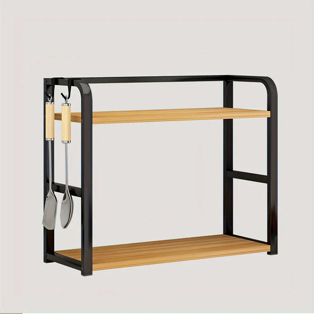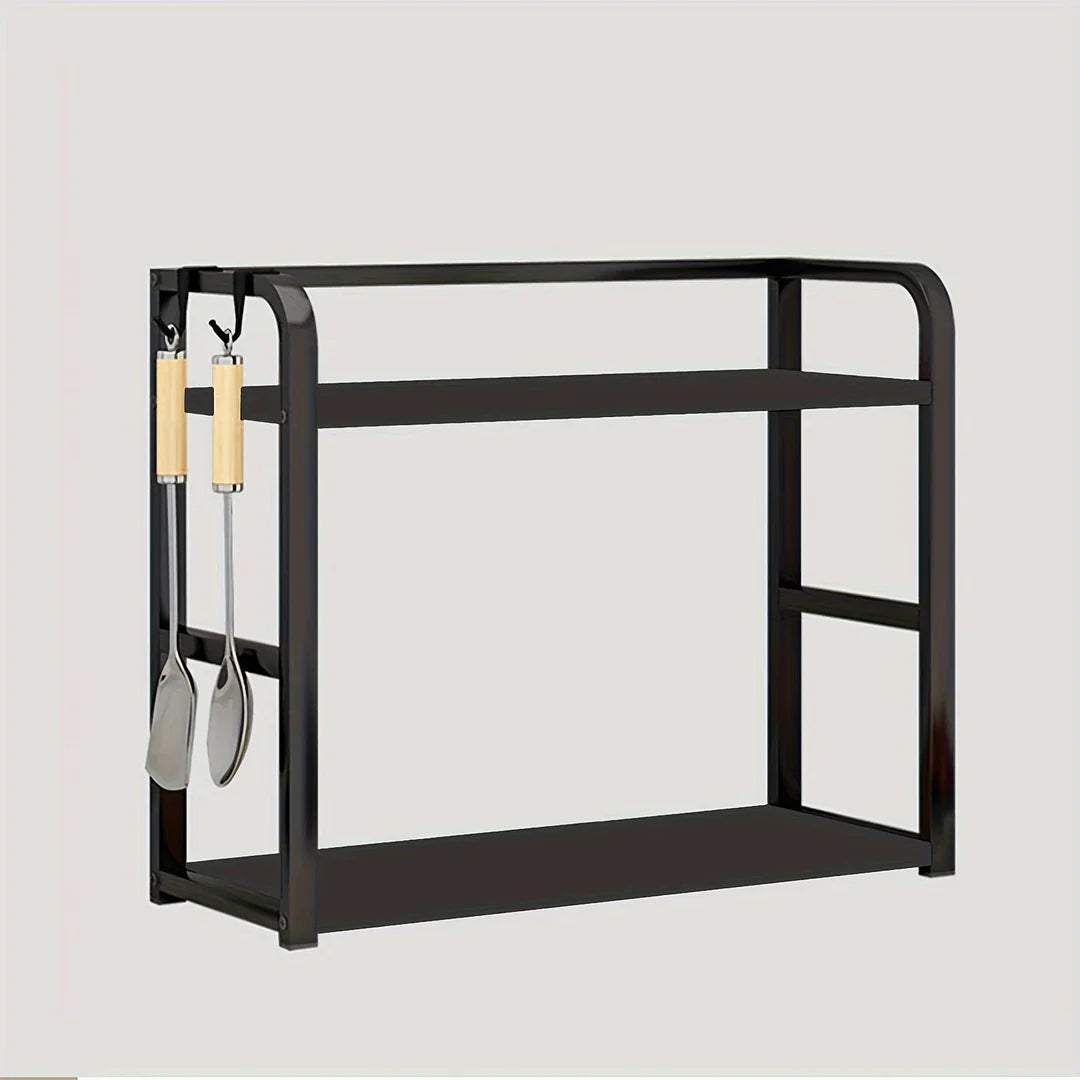 - 🧺 Platzsparendes Design: Zwei Regalebenen bieten ausreichend Raum für Gewürze, Kochutensilien und mehr.