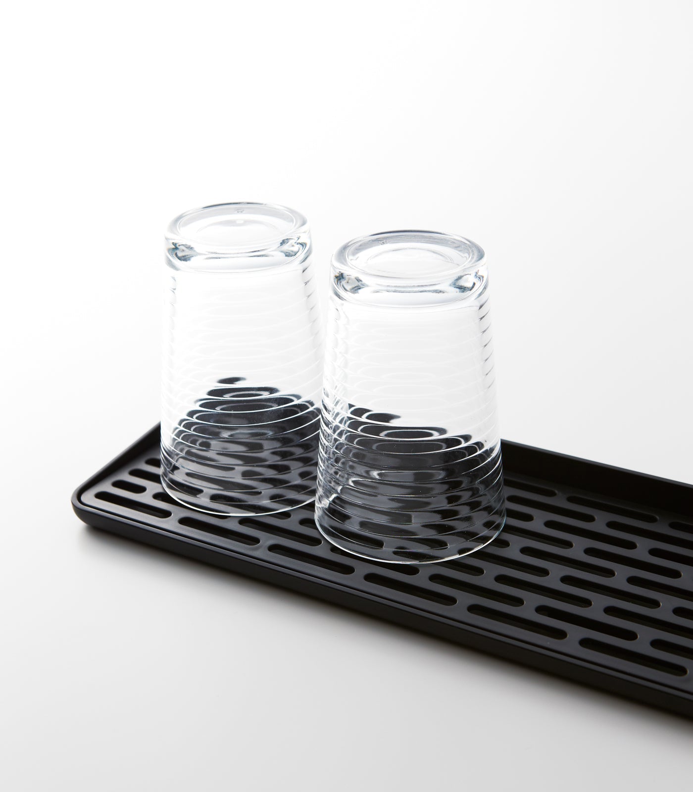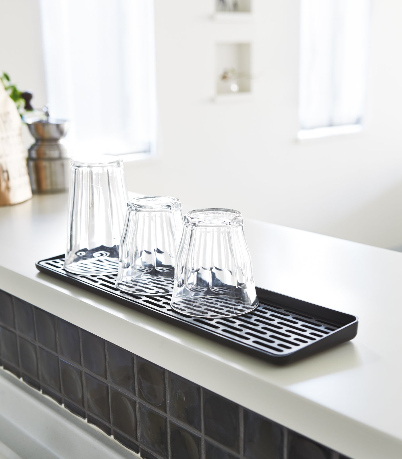 Nun gibt es eine Geschirrabtropfmatte, die Ihr Geschirr über dem schaumigen Wasser anordnet und Ihnen hilft, den ungenutzten Bereich zwischen der Spüle und der Wand besser auszunutzen. Die oberste Ebene dieser Matte ist erhöht, was Ihr Abtropfpotential erheblich steigert. Stellen Sie diese schmale Matte neben Ihre Spüle, um mehr Platz zum Trocknen von Geschirr und Besteck während des Abwaschens zu schaffen, und verstauen Sie sie anschließend, wenn sie nicht mehr benötigt wird.