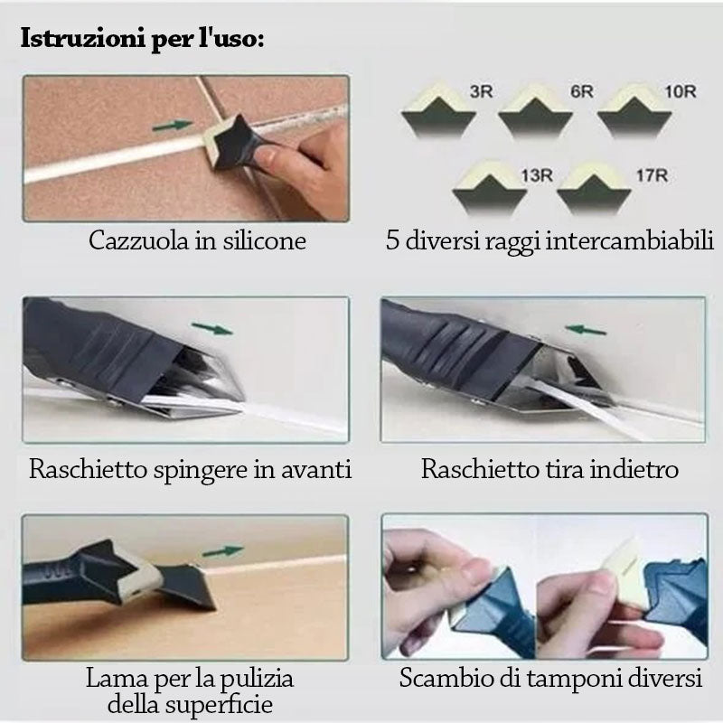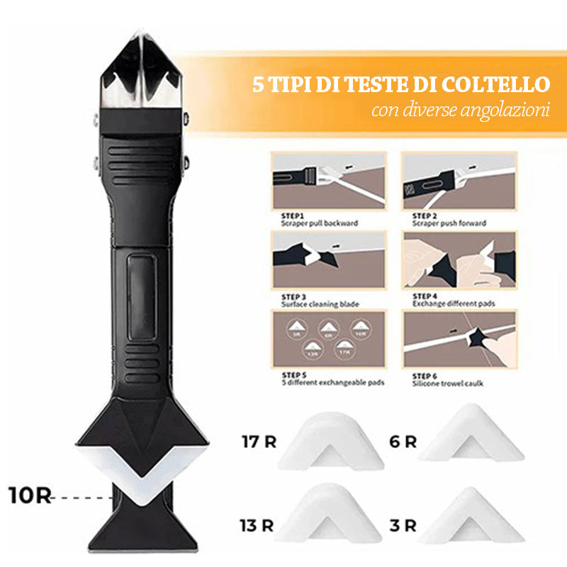 ✔️ 3-in-1 Vielseitigkeit: Spachtel, Silikonschaber und Präzisionsklinge – alles in einem einzigen Werkzeug vereint.