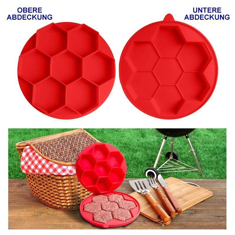 Das sechseckige Design erleichtert das Herausnehmen eines Pattys. Diese bleiben separat und haften nicht am Behälter. -
