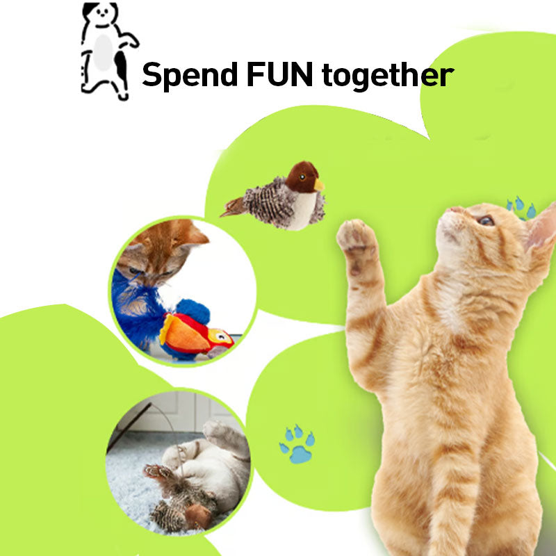 Dieses bezaubernde, fortschrittliche Vogelspielzeug mit nachgeahmten Zwitschergeräuschen hat sich zum Liebling entwickelt. Spielzeuge für Katzen, die Vögel simulieren, sind besonders begehrt bei Hauskatzen, die den Instinkt haben, echte Vögel zu fangen. Ihre Katze wird das Gefühl haben, einen echten Vogel gefangen zu haben, stolz mit ihm im Maul zu stolzieren oder das Katzenfederspielzeug fröhlich durch die Luft zu werfen.