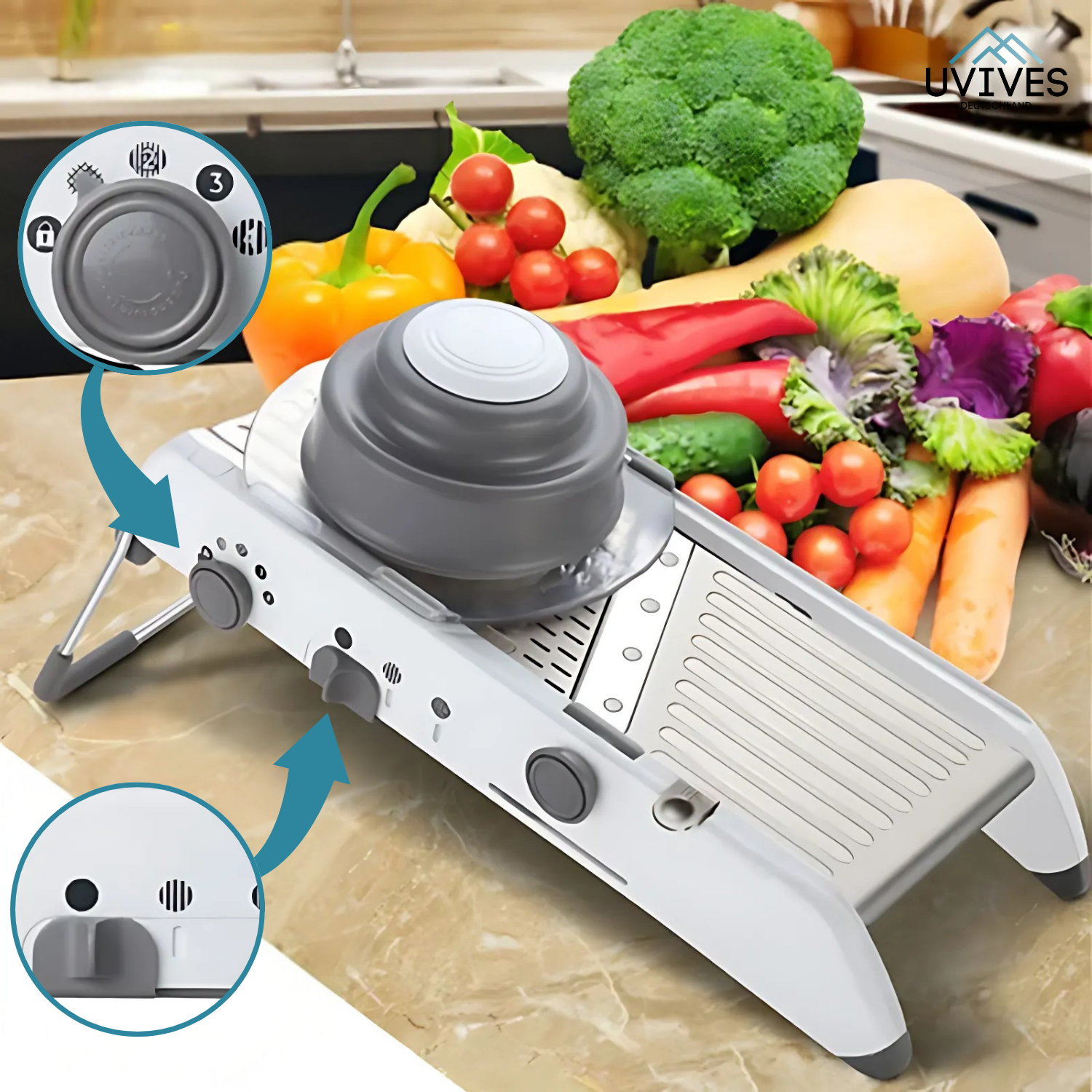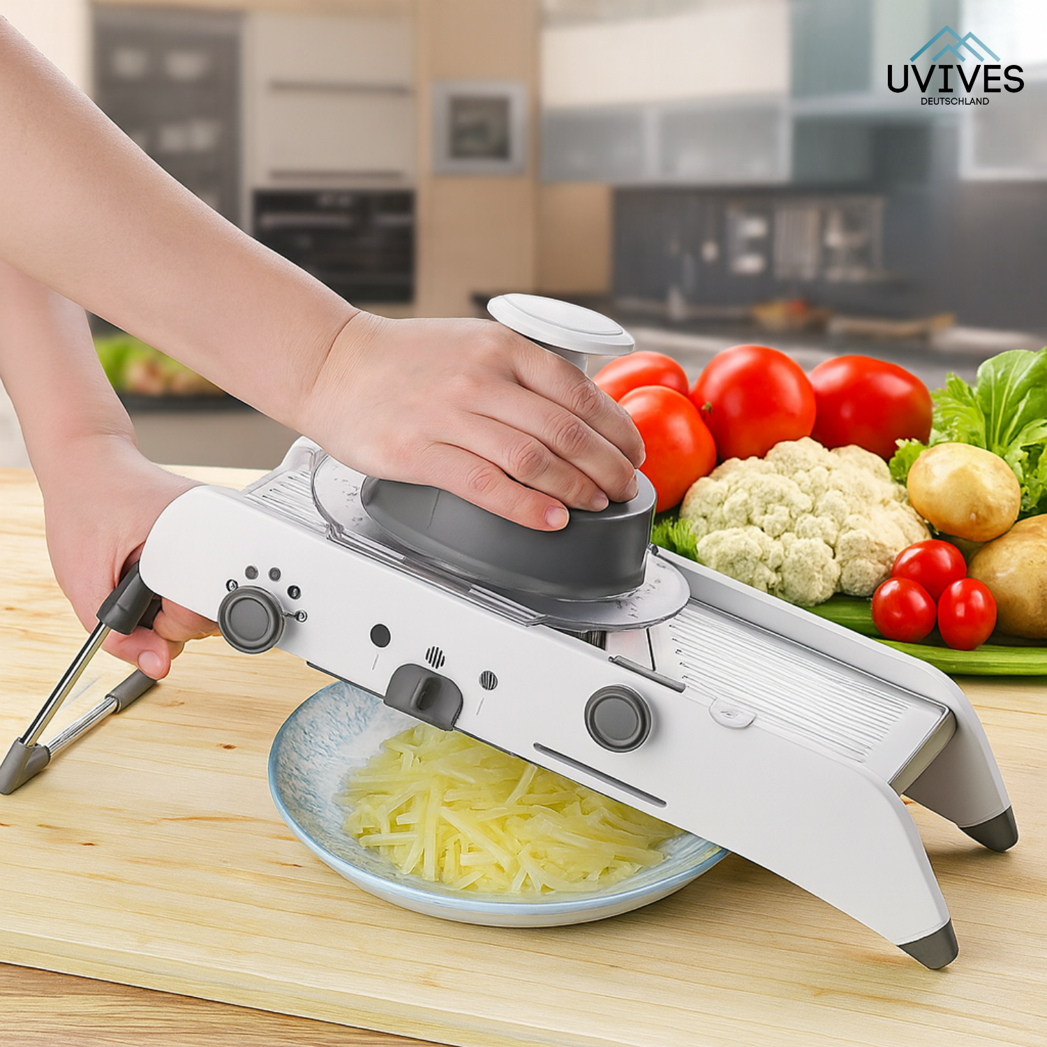 Der SliceMate Mandolinenschneider ist das perfekte Küchengerät für alle, die Obst und Gemüse mühelos und gleichmäßig schneiden möchten. Mit 18 einstellbaren Schnittvarianten und einer integrierten Sicherheitsfunktion ist er die optimale Unterstützung für Hobbyköche sowie Profis. Er spart Zeit, schützt deine Finger und garantiert immer perfekte Ergebnisse.