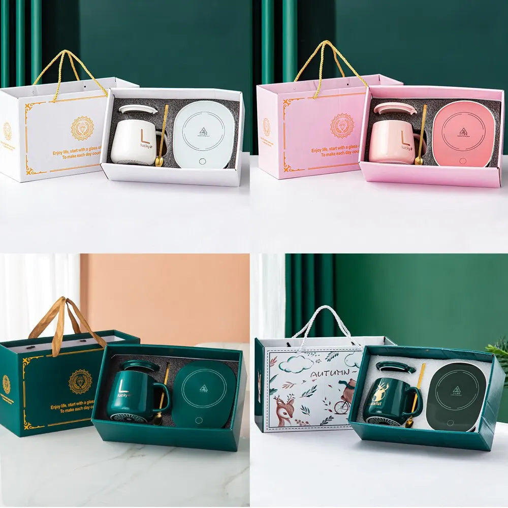 Avelena | Smart Keramik Becher Heizung Tasse Untersetzer Wärmer Thermostat Kaffee Heizung Elektrische Becher Set Milch Tee Heizung Wasser Home Office Geschenk