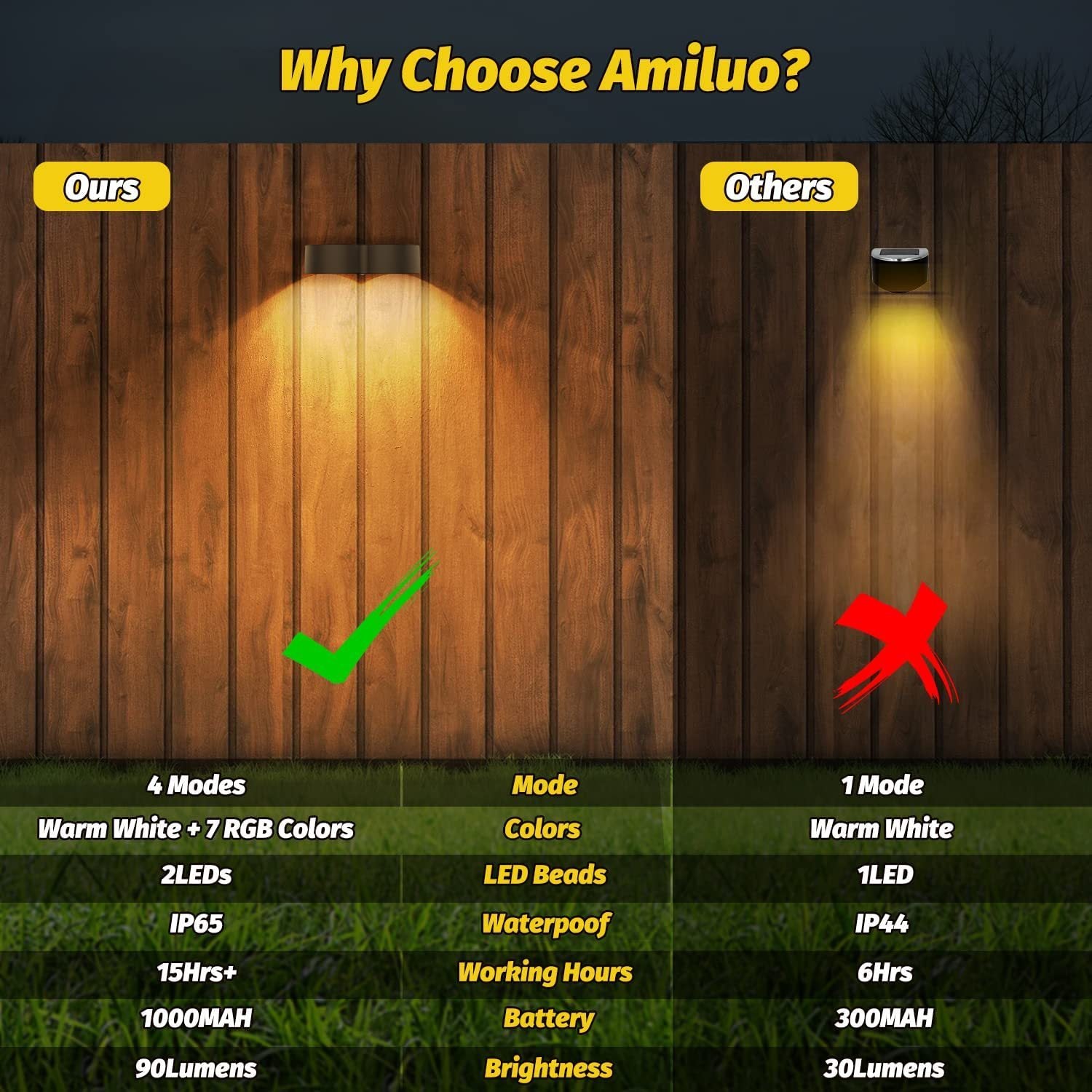• 【Einfache Installation der Solarzaunlichter】Die solarbetriebenen Amiluo-Dämmerungs-zu-Dämmerungs-Lampen lassen sich mühelos installieren; Sie müssen nur das Gerät mit einer Schraubensammlung anbringen, und schon können Sie es nutzen. Falls Sie eine dauerhafte Installation nicht wünschen, können Sie auch doppelseitiges Klebeband verwenden, da die Geräte sehr leicht sind und das Klebeband sie problemlos halten kann.