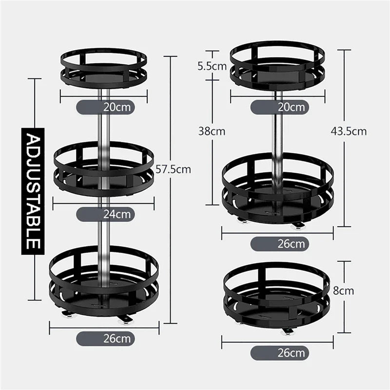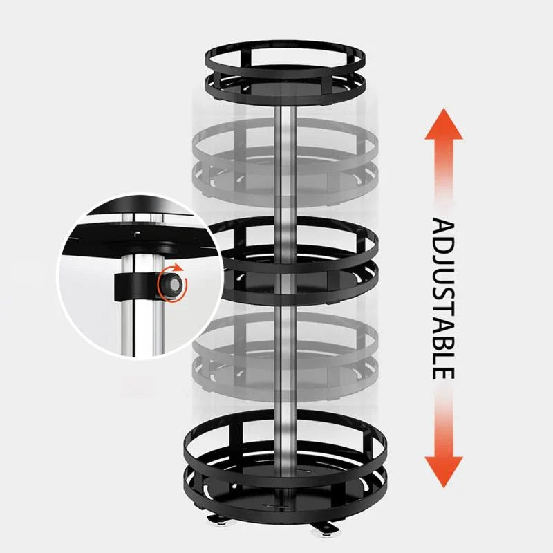 Umarme die Eleganz einer gut organisierten Küche. Die verstellbaren Ebenen des SpiceTwirl passen sich jeder Flaschengröße an, und sein drehbares Design bringt Ruhe in das Chaos. Jetzt können Sie schnell auf Ihre Lieblingsgewürze zugreifen, ohne Durcheinander oder Aufwand.