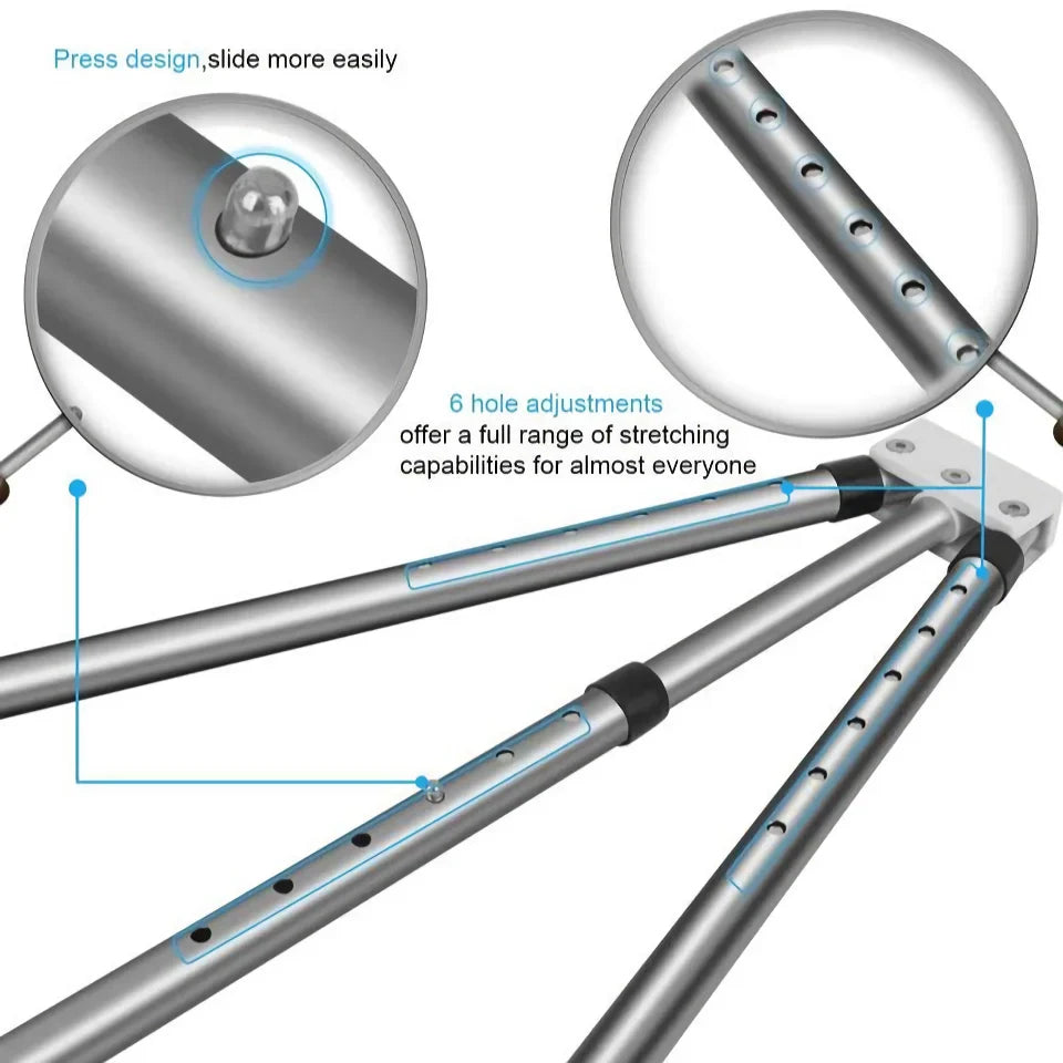 Bereiten Sie sich darauf vor, Ihr Potenzial in Sachen Flexibilität mit diesem verstellbaren 3-Stangen-Beinstrecker zu entfalten. Gefertigt für diejenigen, die ihre Beweglichkeit verbessern möchten, ist dieses Dehnungsgerät für zu Hause ideal für Yoga-Liebhaber, Tänzer, Kampfsportler und Sportler jeder Art. Egal, ob Sie den perfekten Spagat üben oder einfach Ihre Beinbeweglichkeit erhöhen möchten, dieser Beinstrecker aus Edelstahl unterstützt Sie dabei, sicher und effektiv Ihre Ziele zu erreichen. Er ist leicht, faltbar und anpassbar an alle Altersgruppen, und ein unverzichtbares Werkzeug für alle, die ernsthaft an ihrer Flexibilität arbeiten wollen.