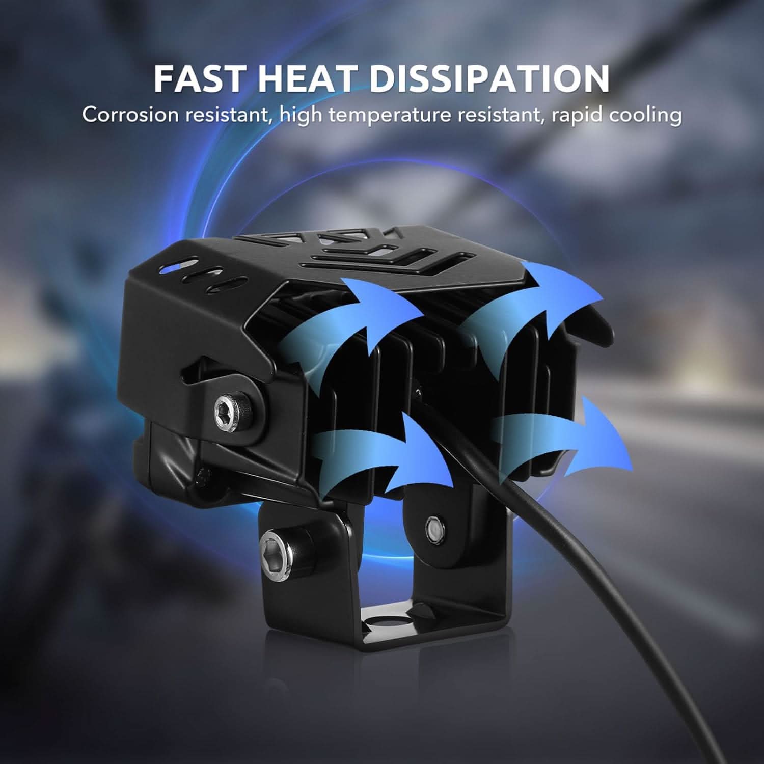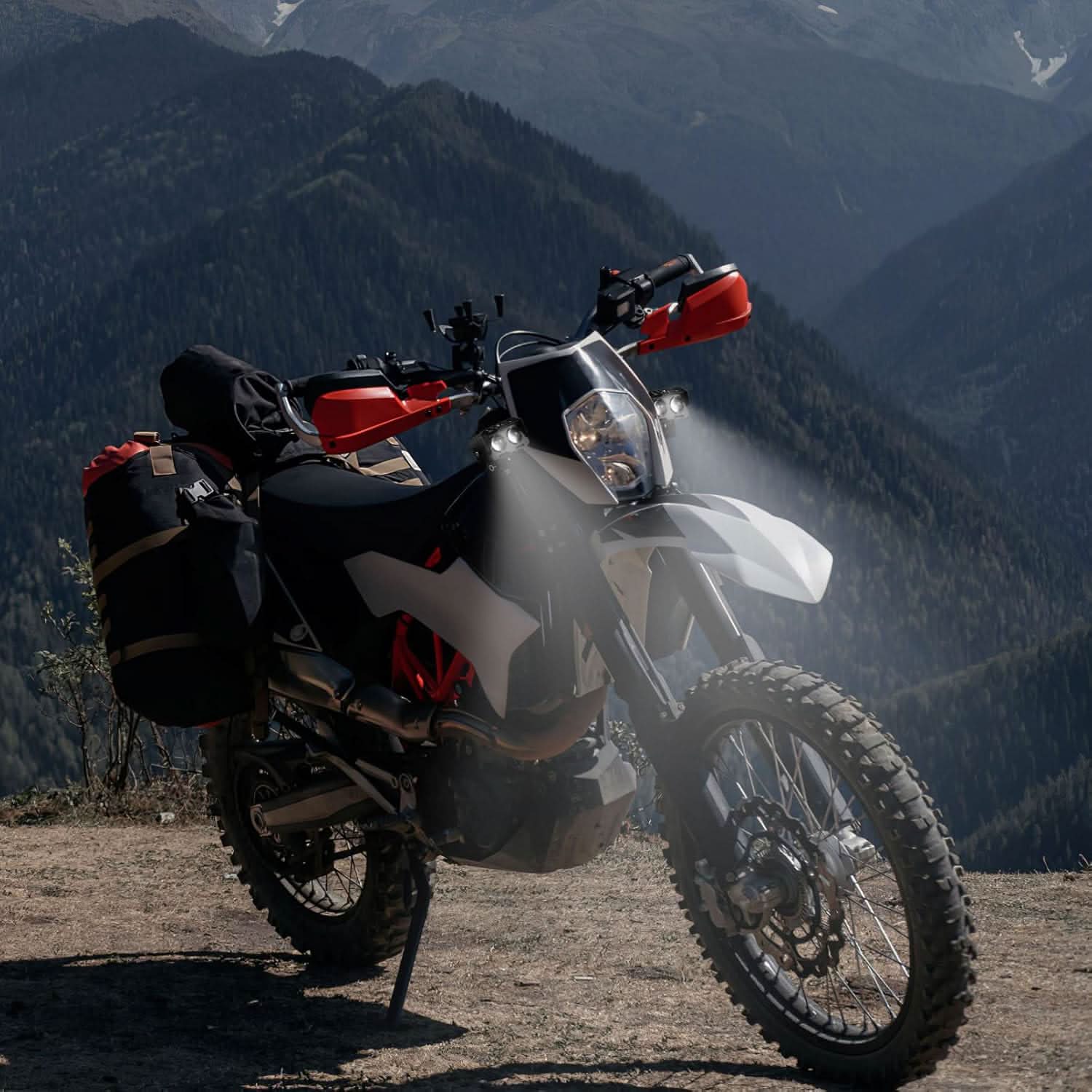 Der Doppelscheinwerfer für Motorräder ist mit hochwertigen LED-Leuchten ausgestattet, die eine hervorragende Lichtdurchlässigkeit und einen großen Beleuchtungsbereich bieten und so die gesamte Fahrbahn beleuchten. Er bietet eine hohe Lichtintensität und eine starke Durchdringung.