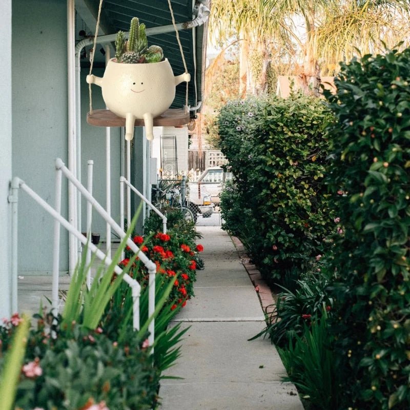 Der Swing Face Hanging Planter bringt Freude in Ihr Zuhause oder Ihren Garten. Dieser entzückende Sukkulenten-Topf aus Resin, der für den Innen- und Außenbereich geeignet ist, kombiniert kreatives Design mit praktischer Anwendung und ist ein ideales dekoratives Element für jeden Pflanzenliebhaber. Hergestellt, um verschiedenen Wetterbedingungen standzuhalten, zeichnet er sich durch seine Robustheit aus und ist auch ein wunderbares Geschenk für Freunde und Familie.