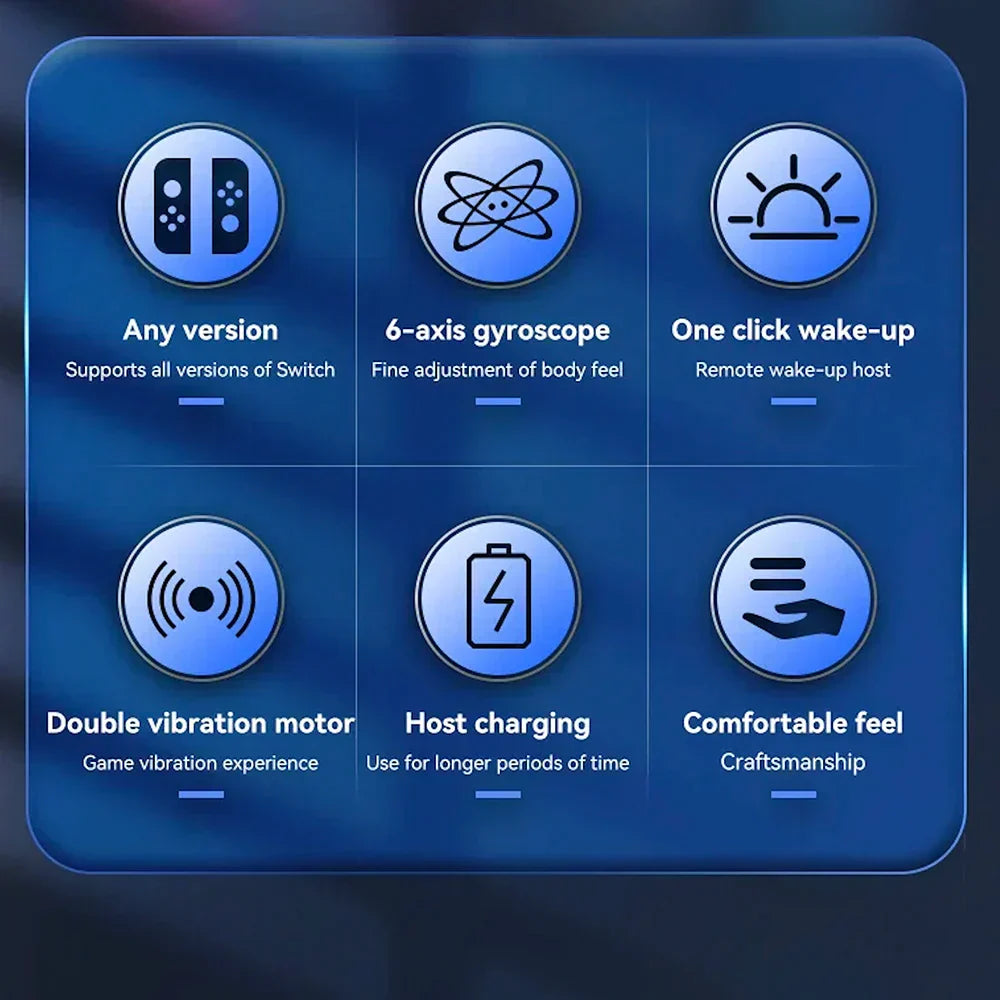 Dieser Switch-Controller bietet eine Wake-Funktion, die das Aktivieren der Konsole und das Starten von Spielen schneller und einfacher gestaltet. Wecken Sie die Switch aus dem Standby-Modus, indem Sie die Home-Taste drücken, ohne den Controller zuvor mit der Konsole verbinden zu müssen.