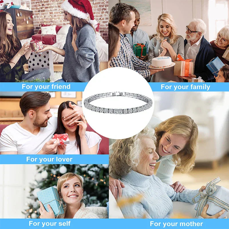 Heben Sie sich ab mit dem Tennisarmband, entwickelt, um sowohl legere als auch formelle Kleidung zu ergänzen. Die Vielseitigkeit und die schillernde Anziehungskraft sorgen dafür, dass Sie überall strahlen.