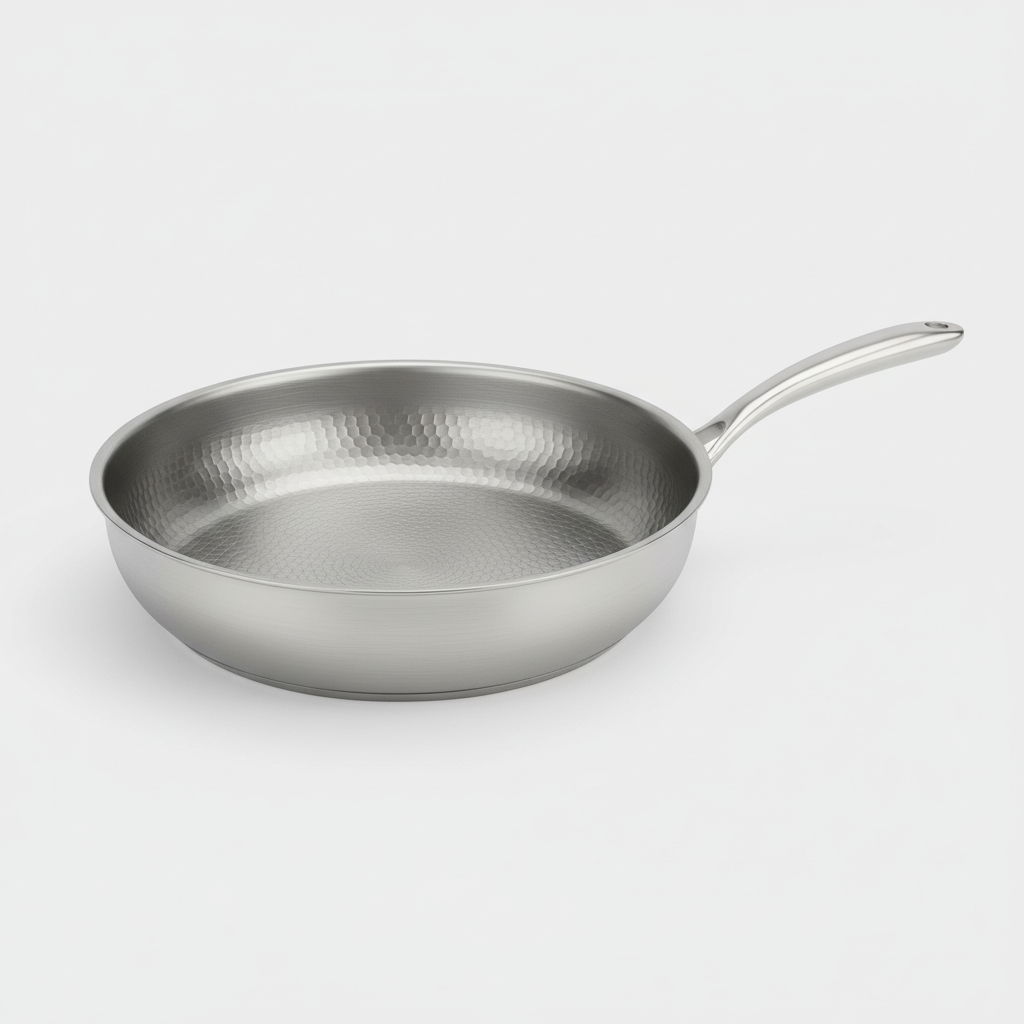 Die gehämmerte Titanoberfläche bietet eine natürliche Antihaftwirkung durch ihre Materialstruktur. Lebensmittel lassen sich optimal anbraten, ohne dass Beschichtungen abplatzen oder Schadstoffe freigesetzt werden. Ideal für scharfes Anbraten, Rösten und professionelle Ergebnisse.