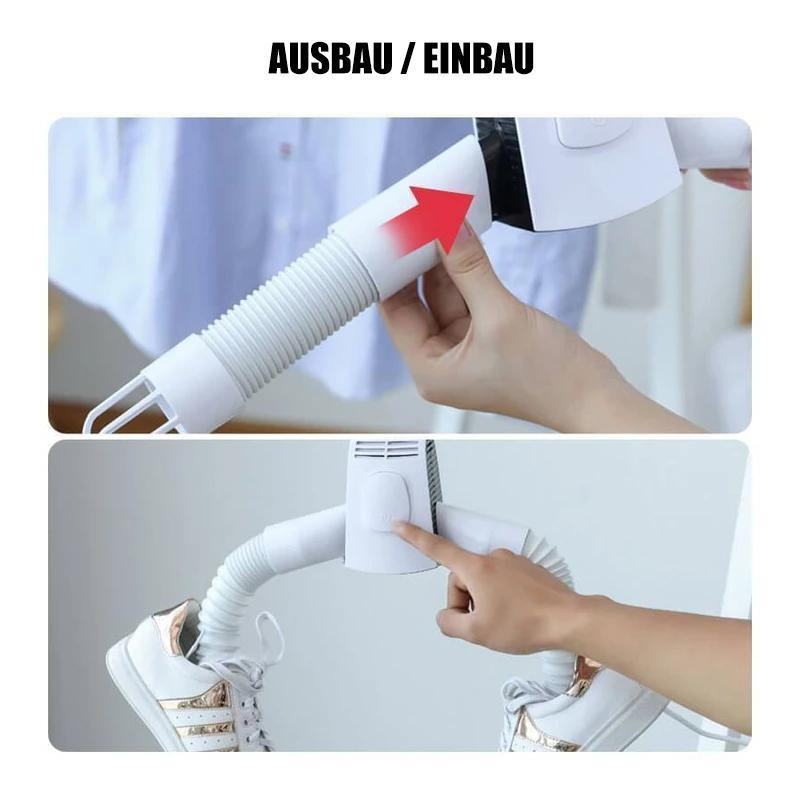- VIELFÄLTIGE NUTZUNG: Dieser elektrische Wäschetrockner ist nicht nur für Kleidungsstücke gedacht, sondern kann auch zum Trocknen von Schuhen verwendet werden, indem spezifische Aufsätze hinzugefügt werden. Setzen Sie einfach die Schuhe auf den speziellen Adapter, schließen Sie ihn an und lassen Sie sie trocknen! Er fungiert als Schuhtrockner und kann ebenso für Socken genutzt werden.