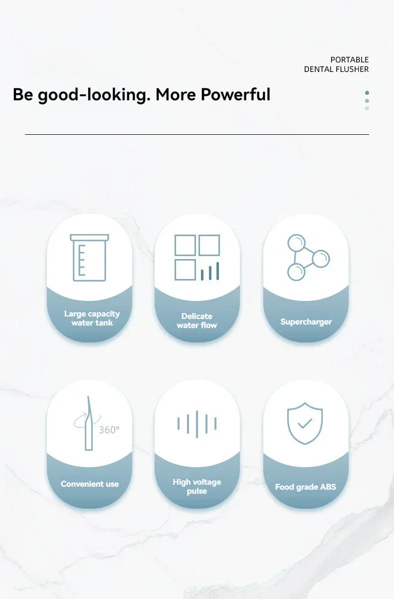 Verabschiede dich von alten Methoden und bringe deine Mundhygiene auf ein professionelles Level. Der tragbare Hochdruck-Wasserflosser ist die perfekte Mischung aus Leistung, Design und Bequemlichkeit – für strahlend weiße Zähne und gesundes Zahnfleisch!