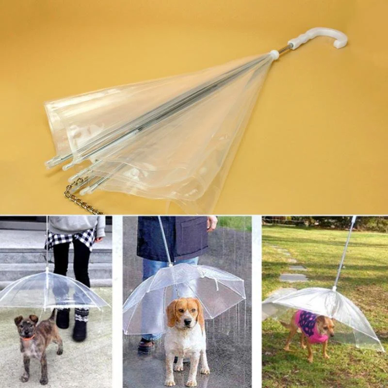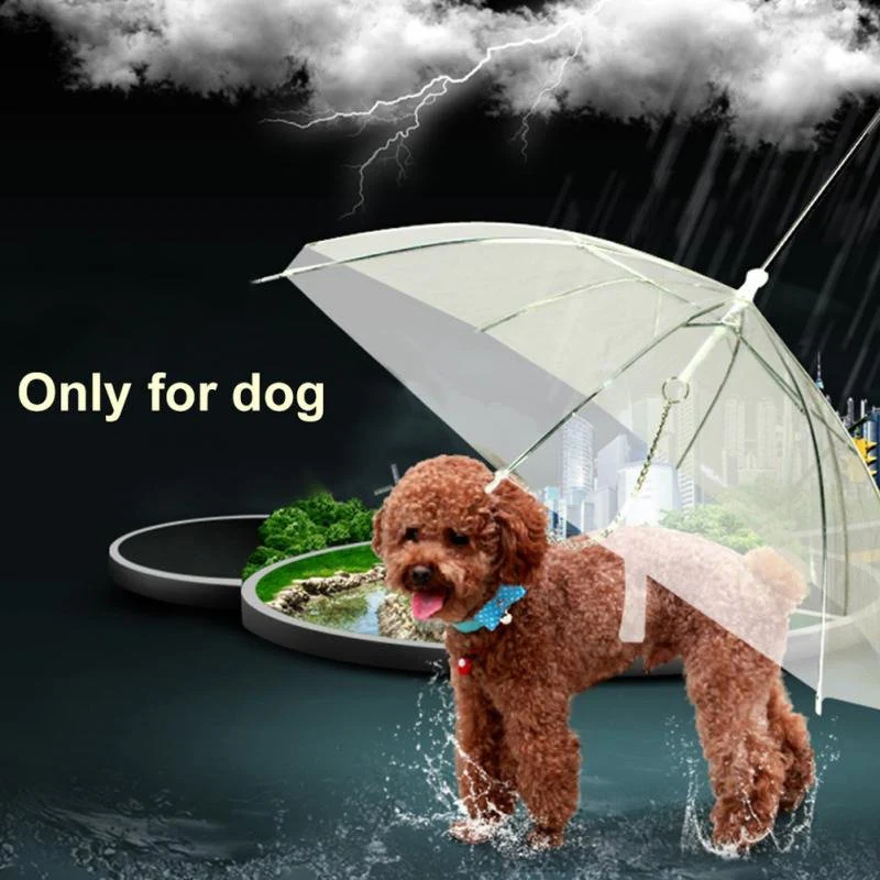 Transparenter Hunderegenschirm mit integriertem Leinenhaken