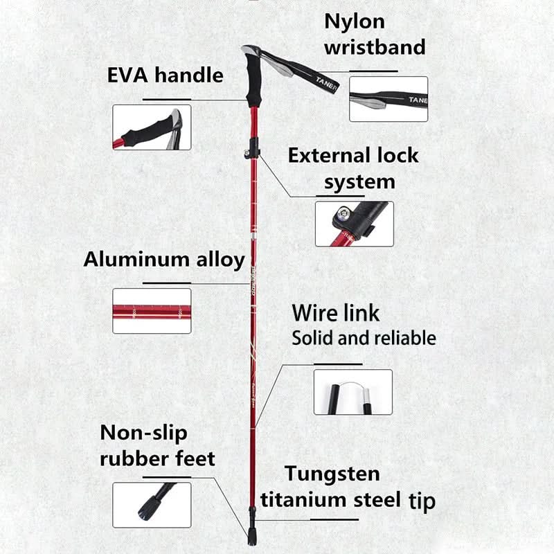 Genießen Sie die Natur mit unseren leichten, 5-teiligen Teleskop-Trekkingstöcken, die speziell für Wander- und Campingliebhaber entwickelt wurden. Diese kompakten und faltbaren Wanderstöcke bieten ausgezeichneten Halt und Stabilität während Ihrer Abenteuer.