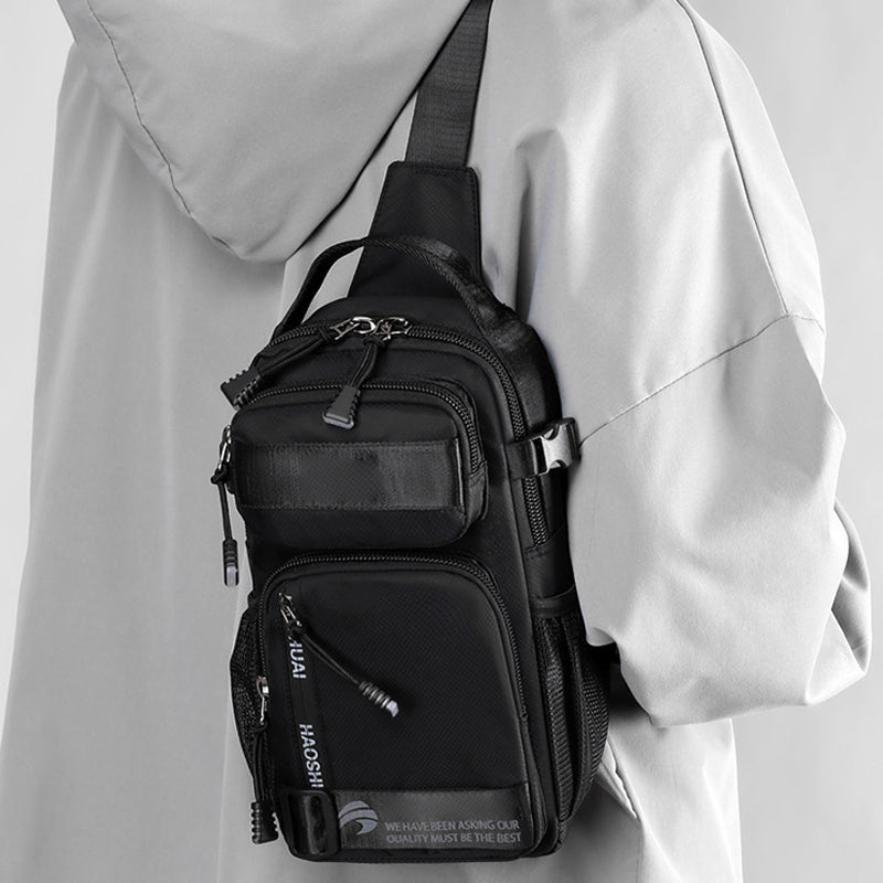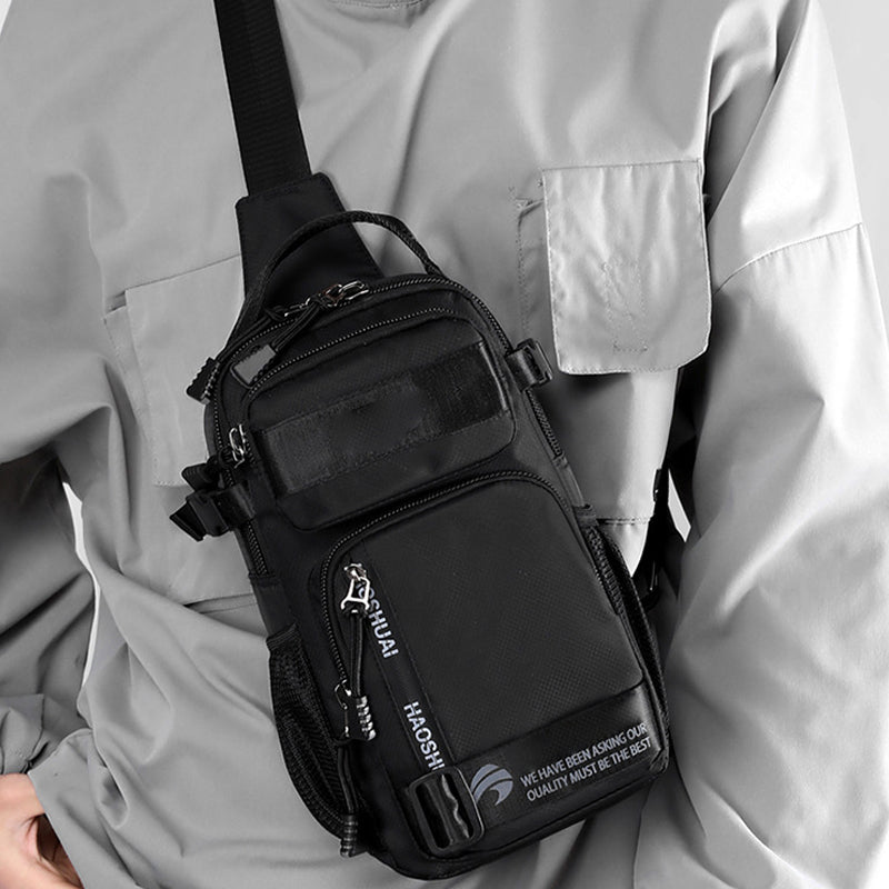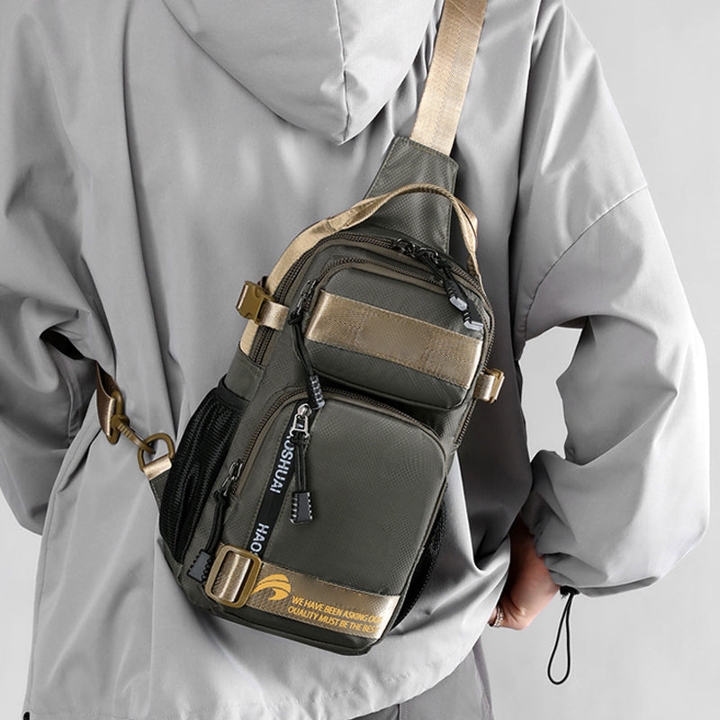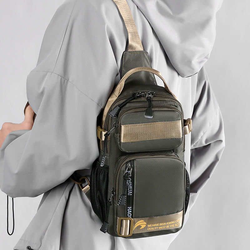 【Wasserabweisendes Material】 Diese Brusttasche bietet eine hervorragende Strapazierfähigkeit, hat ein leichtes Gewicht und eine angenehme Haptik; Der Stoff ist leicht und wasserabweisend. Wassertropfen perlen schnell von der Oberfläche ab und schützen den Inhalt bei regnerischem Wetter.