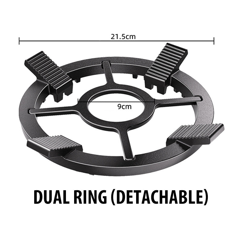 ABNEHMBARES INNERES KREIS: Der Ständer verfügt über einen abnehmbaren inneren Kreis, der angepasst werden kann, um kleinere Töpfe zu halten und Stabilität beim Kochen zu gewährleisten. Dieses Zwei-in-eins-Design ermöglicht eine vielseitige Nutzung. Mit schrägen Ecken, die sich an die Formen der Töpfe anpassen, maximiert es den Kontakt für eine gleichmäßige Wärmeverteilung und ist perfekt für runde sowie spitzboden Kochgeschirr.