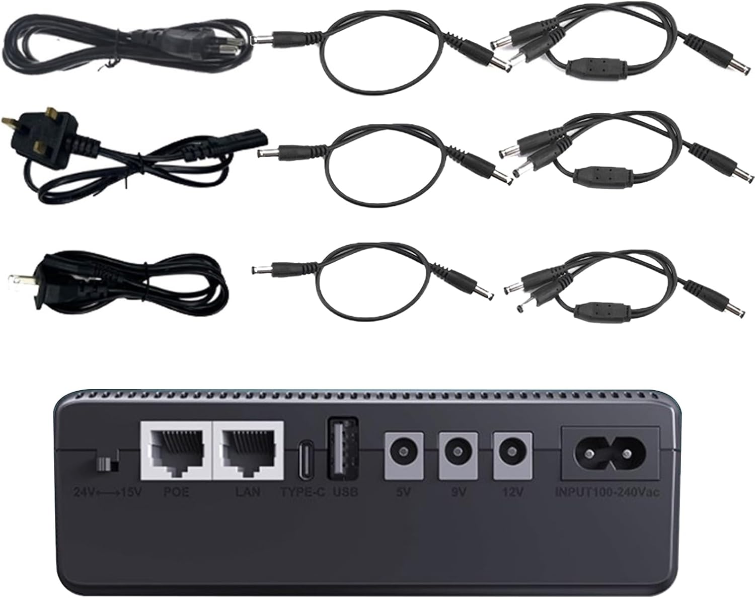 Diese UPS-Backup-Batterie sorgt dafür, dass lebenswichtige Geräte wie Überwachungskameras, Router, Zutrittskontrollsysteme und Brandschutzanlagen ununterbrochen betrieben werden. Mit einer Kapazität von 10400 mAh liefert sie beständige Leistung für mehrere Geräte und garantiert eine gleichmäßige Stromversorgung. Dank modernstem Schutz vor Überladung, Tiefentladung, Überstrom und Kurzschluss sichert sie einen sicheren und stabilen Betrieb. Ihr kompaktes und tragbares Design ermöglicht eine einfache Mitnahme in der Tasche oder im Auto, was sie zu einer idealen Lösung sowohl für drinnen als auch draußen macht.