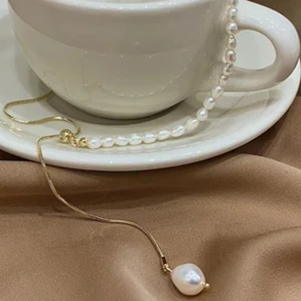 Außergewöhnliche und beeindruckende Perlenkette mit zarten Tropfenanhängern - perfekt für schicke Abend- und Alltagsoutfits.🌟