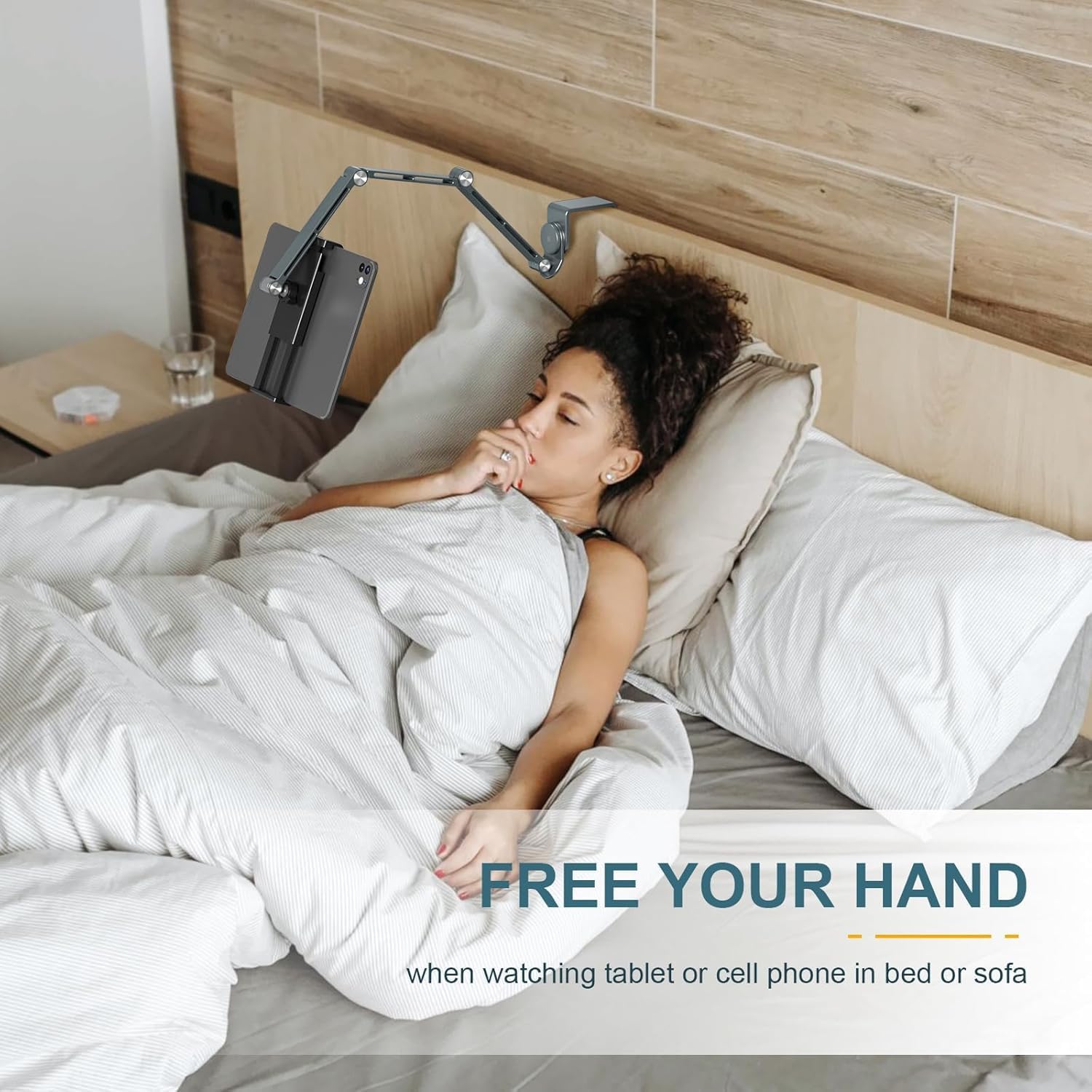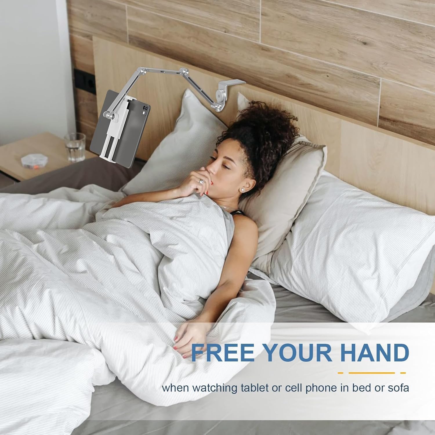 Dieser verstellbare Tablet-Ständer ist kompatibel mit Geräten von 4 bis 15,6 Zoll, einschließlich iPads, Samsung Galaxy Tabs, Surface Pro, Kindles und tragbaren Monitoren. Ausgestattet mit fortschrittlichen Dämpferachsen ermöglicht er eine sanfte Drehbewegung und sicheren Halt, ohne zu wackeln oder umzukippen. Das innovative Design mit mehreren Winkeln ermöglicht eine 360°-Drehung und Höhenanpassung, die ein angenehmes Sehen beim Lesen, Videoanrufen oder Streaming gewährleistet. Hergestellt aus robuster Aluminiumlegierung mit rutschfesten Silikonauflagen sorgt er für Sicherheit und Stabilität Ihres Geräts. Dank des faltbaren Designs und der C-Clip-Halterung kann er platzsparend auf Schreibtischen, Regalen oder Betten montiert werden.