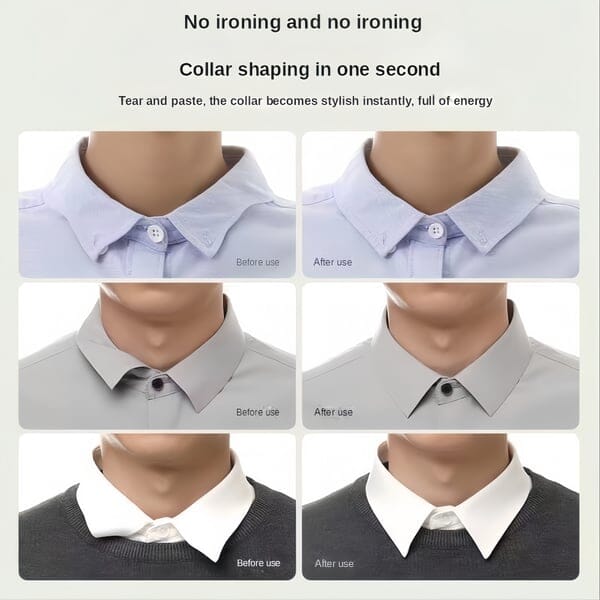 💠Haupteigenschaft: Dieser Klebesticker wird hauptsächlich verwendet, um Kragen aufrecht und knitterfrei zu halten, geeignet für Hemden und andere Bekleidungsstücke mit gefalteten Kragen.