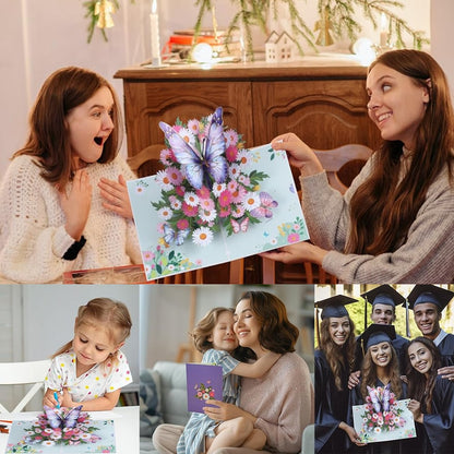 Ideal für den Muttertag, Geburtstagsfeiern oder jeden besonderen Anlass. Diese 3D-Pop-up-Karte bringt Schmetterlinge und Gänseblümchen zum Leben und kreiert einen liebevollen Moment, den deine Lieben wertschätzen werden. Verfasse deine süßesten Botschaften und lass diesen kleinen Garten der Freude sie daran erinnern, wie einzigartig sie sind.