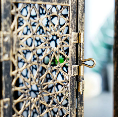 Das nostalgische Windlicht im Bronzedesign ist die perfekte Wahl, um deinem Wohnraum eine angenehme, elegante Atmosphäre zu verleihen. Mit seinem kunstvollen orientalischen Muster und der edlen Bronze-Oberfläche wird dieses Windlicht zum absoluten Eyecatcher – sei es im Wohnzimmer, auf der Terrasse oder als Akzent deiner Tischdekoration.