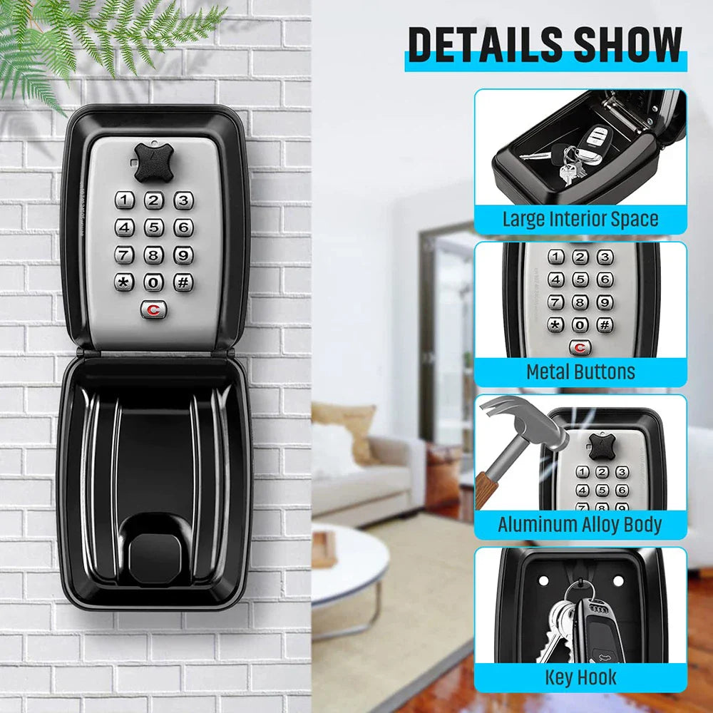 Konstruiert, um Regen, Schnee, Hitze und Kälte zu widerstehen, sorgt diese hochwertige wasserdichte Schlüsselbox dafür, dass Ihre Schlüssel bei jeder Witterung trocken und rostfrei bleiben. Perfekt für Außenwände, Garagen und Eingänge.