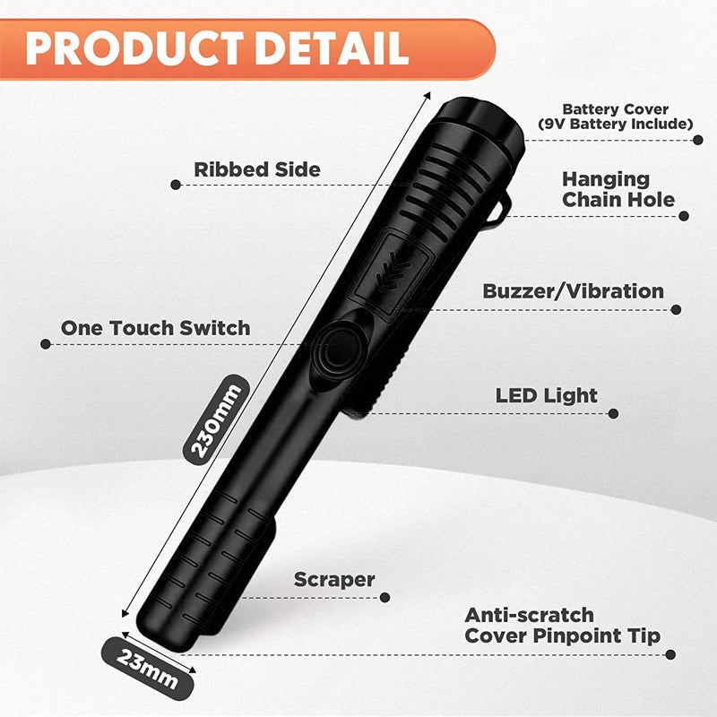 【Komplett wasserdichtes Design】Die Spitze des staubdichten Metalldetektors ist vollkommen wasserdicht. Ganz gleich bei welchen Wetterbedingungen, selbst bei starkem Regen, können Sie den wasserdichten Pinpointer-Metalldetektor in Gewässer wie Seen, Flüsse, Teiche und Ozeane tauchen, um versteckte Schätze unter Wasser zu entdecken.