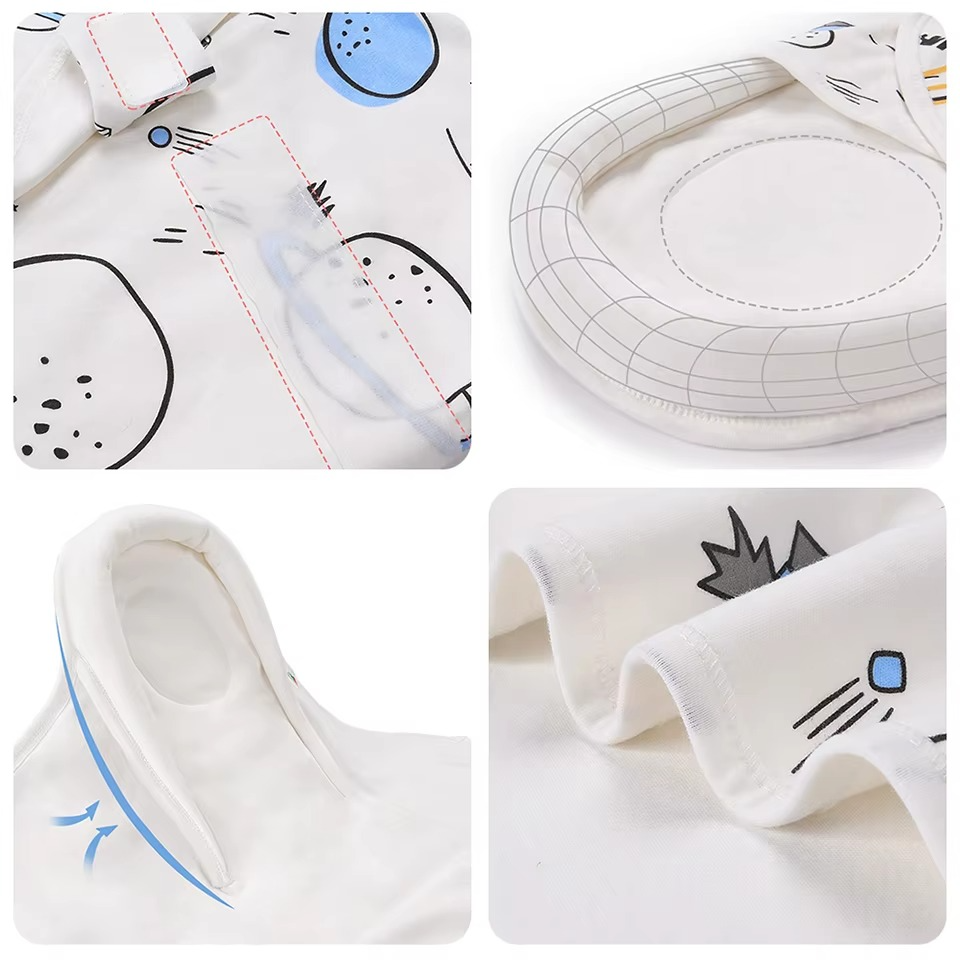 Aus atmungsaktiver 100 Prozent Baumwolle gefertigt, verfügt dieser Schlafsack über eine weiche Polsterung im Kopf- und Nackenbereich für zusätzlichen Schutz. Das einfach zugängliche Design vereinfacht nächtliche Wickelwechsel, während dein Baby gemütlich und sicher bleibt.