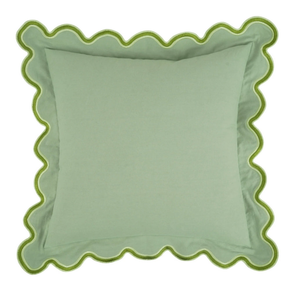 Verschönern Sie Ihr Wohnzimmer mit diesen schickem Kissenbezügen, die markante Wellenkanten zeigen. Hergestellt aus 100% Baumwolle bieten sie ein sanftes, atmungsaktives Gefühl und harmonieren wunderbar mit sowohl bohemian als auch zeitgenössischer Dekoration, wodurch sie perfekt sind, um Ihr Sofa oder Schlafzimmer zu stylen.