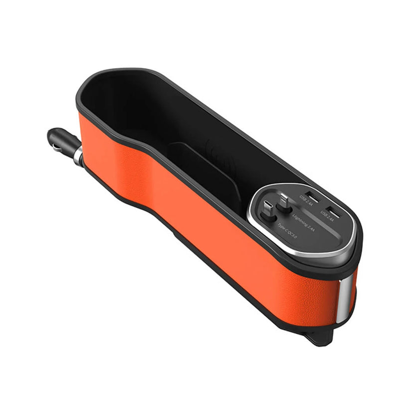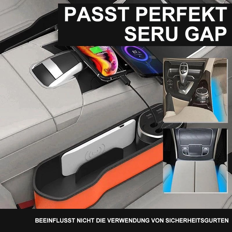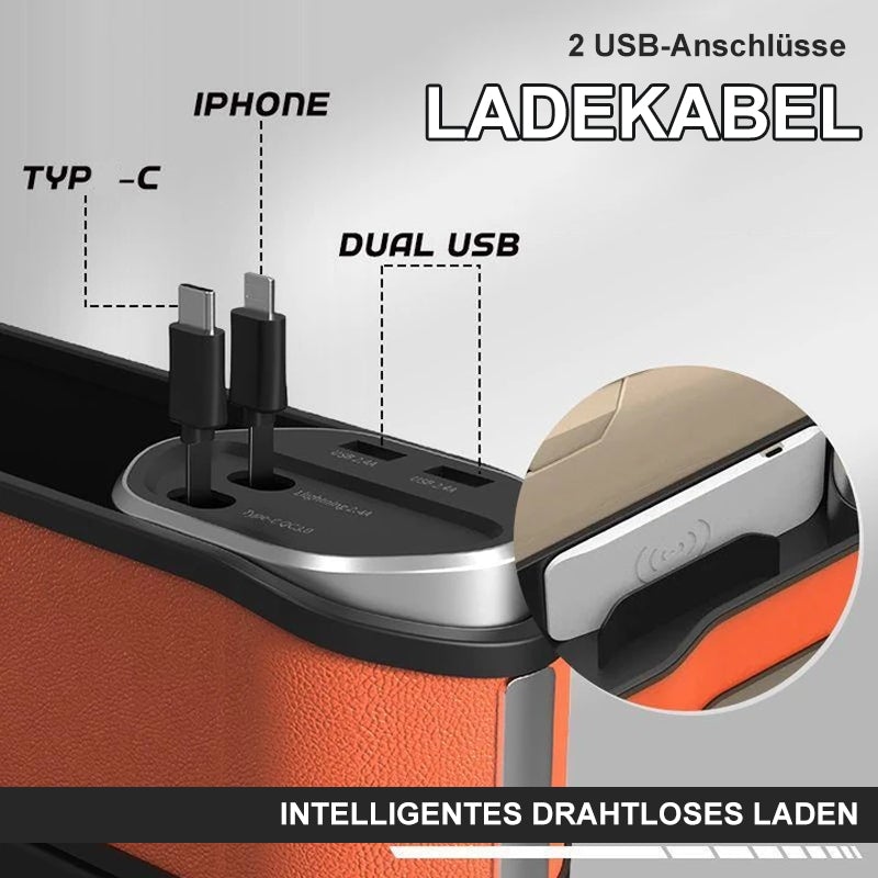 Dank eines 2-in-1-Designs können Sie das unordentliche Ablagefach sortieren und kleine Gegenstände mit dem leistungsfähigen Ladesystem im Auto bequem organisieren. Sowohl Fahrersitz als auch Beifahrersitz können gleichzeitig ihre Geräte aufladen. Die Benutzung ist kinderleicht und der Halter bleibt stabil.